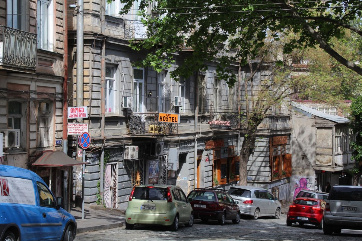 Podrobným plánováním cesty jsem se nechtěl nijak moc zatěžovat a upřímně mě to ani moc nebaví. Vytipoval jsem si jen pár zajímavých míst, která by stála za návštěvu a přes Booking sehnal bydlení. Pokud cestujete sami, případně trávíte hodně času chozením a potřebujete jen někde složit hlavu, jsou dle mého hostely vynikající volbou. Nechal jsem si na Bookingu vyhledat ubytování v Tbilisi dle ceny od nejnižší po nejvyšší a vybral jednu z nejlevnějších nabídek, aniž bych se nějak zabýval referencemi, nebo projížděl fotky. Lithostel za 8 GEL na noc ( 68 CZK) se ukázal jako trefou do černého. Na první pohled ne příliš vábně působící ubytování se totiž nachází nedaleko hlavní třídy i centra města, hned pod hostelem jsou dvě vynikající restaurace s gruzínskou kuchyní, kousek stanice metra a o něco větší kousek, ale stále pěšky dostupné vlakové nádraží. Tím nejlepším na hostelu ale byla společnost lidí, která se tam sešla. To samozřejmě vždy zálaží na aktuálním místě a čase, ale tento typ ubytování prostě přitahuje mladé lidi s dobrodružnou povahou a slibuje nové známosti a zážitky. Já jsem se hned první den seznámil s dvěma Francouzkami, Victorií a Jeanne, s Finem Mitjou, Australanem Jackem, Kanaďanem Kevim, s příjemným chlápkem z Íránu, s lidma z Ruska, Uzbekistábu. Největší borec byl ale Jack. V Austrálii pracoval v IT, měl byt auto, dobré vyhlídky v práci. Ze dne na den se ale rozhodl vše prodat, z práce odejít a cestovat po světě, dokud mu budou stačit peníze. Přeletěl do Nepálu, pak do Vietnamu, potom do Gruzie, kde pobyl několik dní, a kde se naše cesty střetly. Moc příjemný kluk, obdivuju ho ze jeho odvahu. Samozřejmě jsme jako celá nově složená mezinárodní parta vyrazili do místních restaurací, kde jsme řádně popili a pokouřili vodní dýmku. Alláh to samozřejmě ví, ale pro ostatní upřesním, že Íránec se alkoholu ani nedotkl a holdoval jen kouři z dýmky. Po ukončení provozu všech dostupných restaurací jsme ještě ve večerce nakoupili několik plasťáků s pivem ( v Gruzii se plasťák rovná 2,5 litrům) a pokračovali v párty v kuchyňce hostelu... Tím ale nechci přeskočit celý den. Po příjezdu do hlavního města Gruzie zhruba v 7:00 ráno na Náměstí Míru jsem využil času a téměř prázdného města a obešel všechny důležité místa, památky a stavby, které jsou koncentrovány v dosahu a jako na dlani, udělal si pár pěkných fotek a zašel si na vlakové nádraží koupit jízdenku do Baku. Do hostelu jsem zamířil až v lehce odpoledních hodinách.