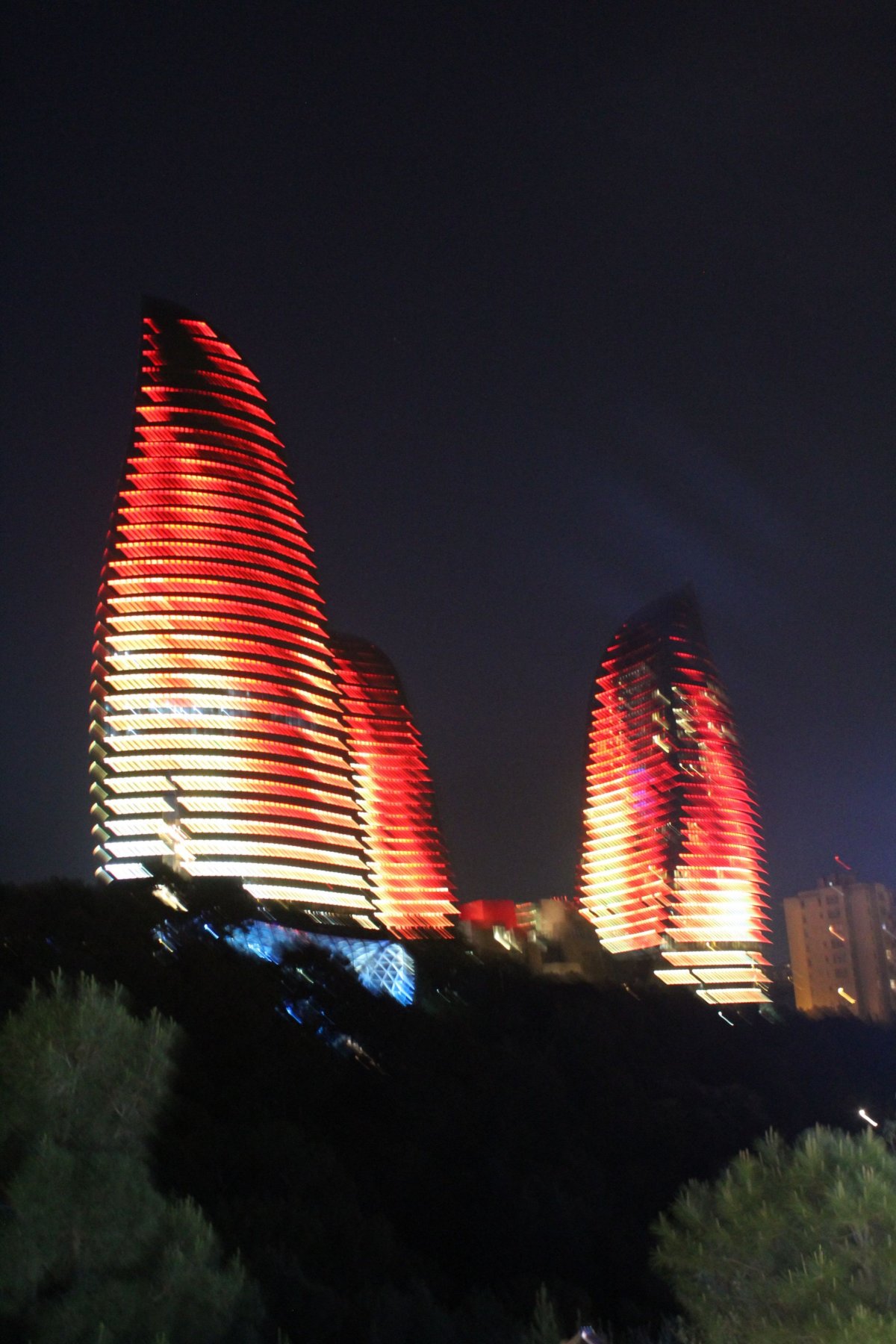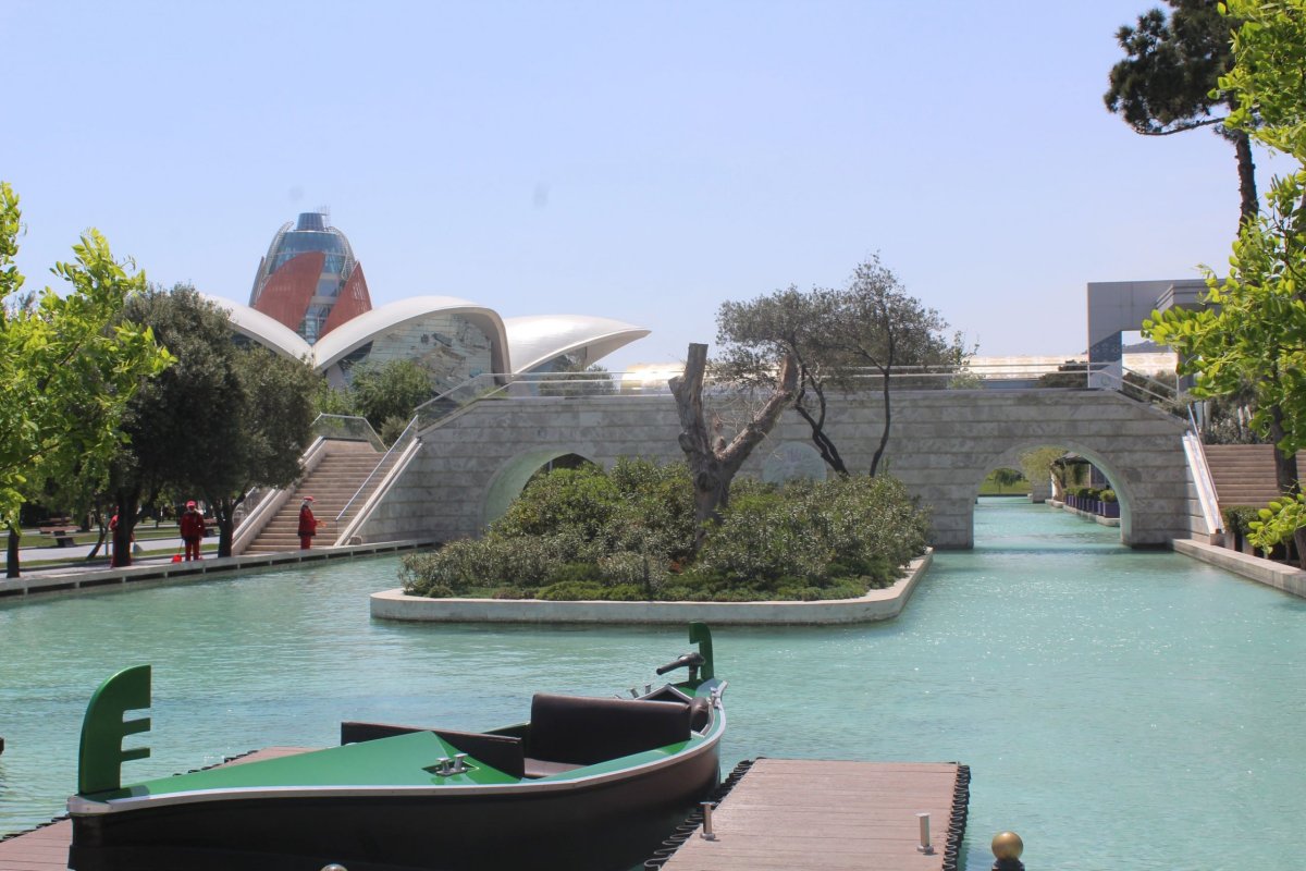 Baku je vůbec zvláštní město a i v samotném Ázerbájdžánu na mě působí jako taková oáza, nebo stát ve státě, ale vyloženě v pozitivním smyslu. Celé široké centrum města je jako dělané na příjemné procházky, které ani po několika dnech neomrzí. Historická část města je propojena s tou moderní, všude jsou parky, fontány, příjemné restaurace a spousta staveb a atrakcí, které evokují dojem jakoby z jiných částí světa. Vodní kanály a gondoly připomínají Benátky, stavba nedaleko pak operu v Sydney, při pobřeží je obří kolo jako v Londýně, mrakodrapy jako v New Yorku. Nejpůsobivější jsou ale Flame Towers. Tři vysoké, prosklené věže přes den připomínající tvarem plameny ohně a v noci jsou díky světelné projekci opravdu plápolající a hořící. Z ohnivé podoby pak plynule přejdou do barev státní vlajky a pak do modré a opět ohnivé. Už jsem pár věcí viděl, ale tohle bylo opravdu působivé. Údajně každý večer tato projekce vyjde na necelých 10 tis USD, ale proč ne, když všude kolem města vytéká ropa ze země jako voda.