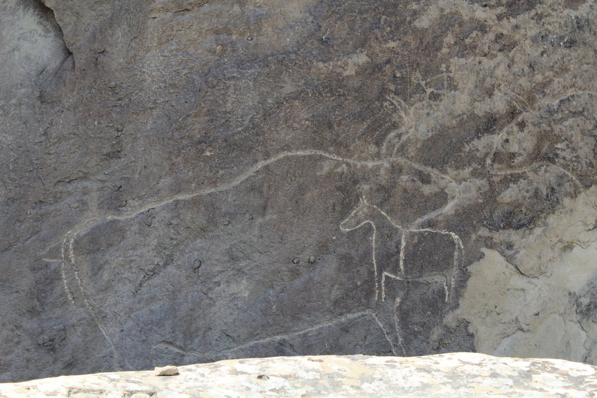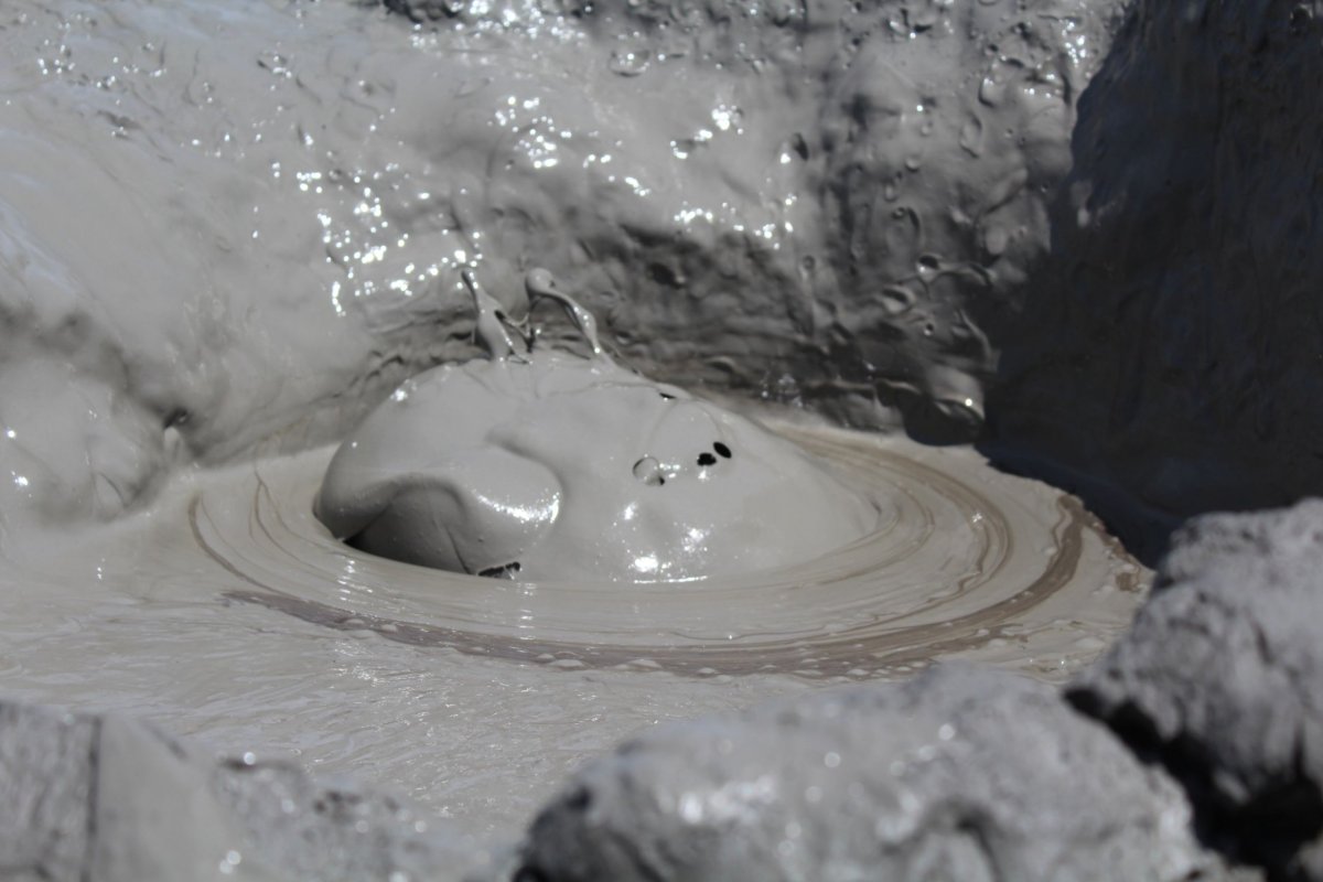 V každém případě podívání je to zajímavé. Studené bahno vybublává ze země, staví si krátery ze kterých pak vytéká a na slunci usychá. Na druhou stranu, na celý den to tam taky není, zdrželi jsme se tak 20 minut a pak se nechali odvést ke skalním památkám, které kdysi obývali pravěcí lidé. Toto místo je zajímavé hlavně tím, že se na spoustě skalách a kamenech vyskytují zachovalé malůvky těchto lidí, ať už lidské postavy, nebo zvířata. Nevím, jestli se tu dá jít i někam mimo vyznačené stezky, ale oficiální část s chodníčky a výhledem pro turisty nijak velká není. To samé platí o muzeu, které je pod skalami u parkoviště. V oblasti se zřejmě vyskytuje i dost jedovatých hadů, protože mezi skalami a u chodníčků jsou k vidění výstražné malůvky s hadem, ale já jsem žádného neviděl.