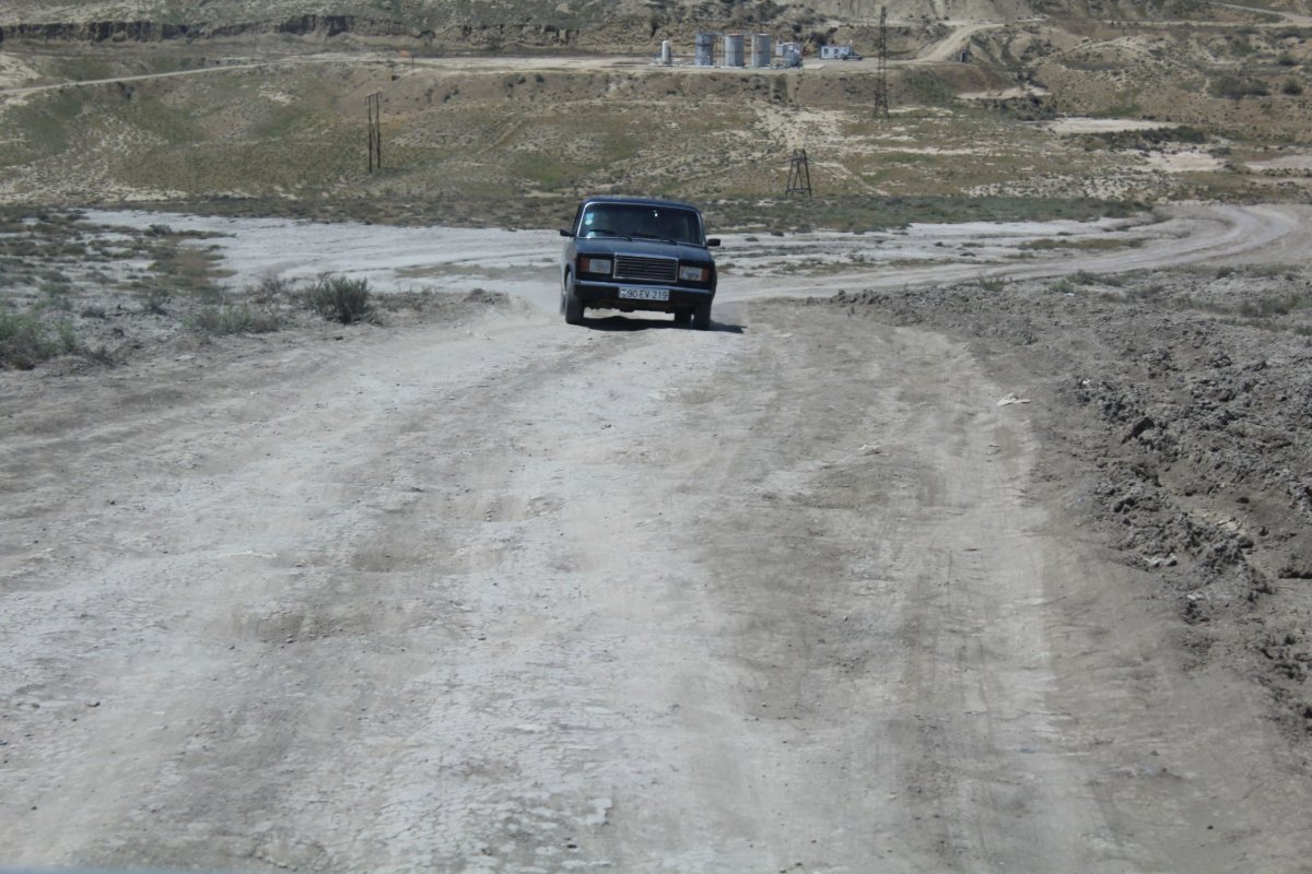 Když pominu možnost půjčení auta, což by možná stálo za to, kdybych měl ví času zajet i do dalších regionů, tak dalším způsobem je doprava autobusem. Ta je nesrovnatelně levnější, autobus mě vyšel nějakou kovovou minci, už si ale nepamatuju její hodnotu. Jeli jsme busem číslo 125, na který se dá počkat u hlavní silnice souběžné s pobřežím Kaspického moře. Autobus pokračuje z centra, přes okrajové části města až úplně mimo Baku. Na jedné ze zastávek (je lepší se zeptat řidiče na které), stojí maršrutky a taxíky a čekají na turisty. Autobusem se dál jet nedá a je tedy nutné přestoupit. Maršrutka vás doveze na další shromaždiště taxíků, do kterých je opět nutné přestoupit. To jsou téměř bez výjímky staré ruské Lady. Brzy jsem pochopil proč. Na nás na místě čekal Xaliqův kamarád s Peugeotem 206. Všechna auta po naplnění vyrazila téměř shodně po rozbité pouštní cestě vstříc bahenním sopkám. Ruské mašiny zmizely během chvíle v dálce a prachu, Peugeot stěží překonal první, větší nerovnost terénu, aby se po několika desítkách metrů musel otočit a vrátit zpět. Druhý pokus s Ladou Nivou 4x4 už proběhl velmi hladce a k bahenním sopkám jsme se asi po 15 minutách divoké jízdy pouštním terénem dostali. Sopky nejsou nijak viditelně označeny, vypravit se k nim na vlastní pěst tak chce aspoň trošku přípravy, ale s běžným silničním autem se k nim stejně nedostanete a pěšky je to hodně daleko. Nebo aspoň k těm, u kterých jsme byli my. Některé jsou viditelné i na satelitní mapě, takže s terénním autem by se k nim dojet dalo, znát cestu.