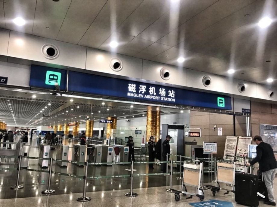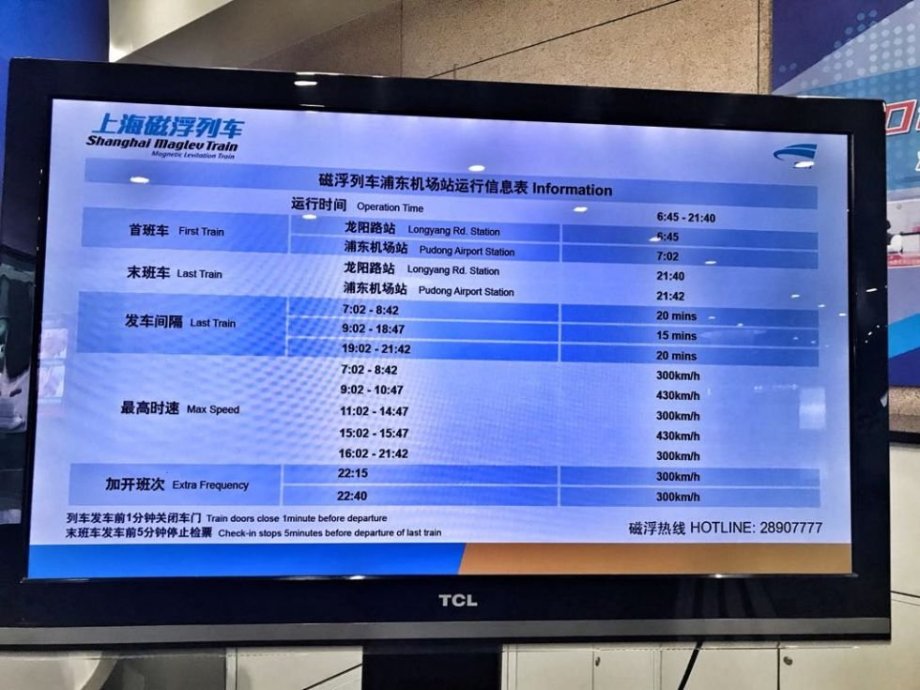 Vzdálenost 30 km překoná Maglev pomocí odpudivých účinků magnetického pole asi za 8 minut a dosahuje rychlosti až 430 km/h. My zažily 310 km/h, a i to byl životní zážitek! Další moje životní poprvé... Po nákupu lístku absovujete scanner zavazadel a během chvilky nastupujete. Myglev jezdí á 20 minut. Když vvystoupíte, musíte okamžitě odejít z nástupiště, což zabezpečují místní průvodčí. Důvodem je to, že eskalátor, kterým vyjedete z nástupiště do nádražní haly se otočí a je už určen pouze pro cestující opačným směrem :)