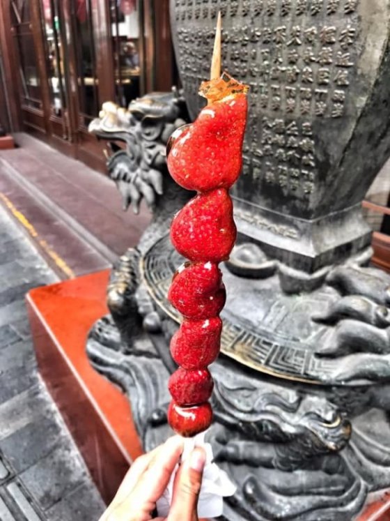 Tolik, co za jeden den v Šanghaji, nesním normálně za týden! Místní vyhlášená kačena nebo nudle, jahody v cukru na špejli, dobrůtky vybrané na míru, které mi nakonec zalili vývarem a udělaly z nich polívku🙈... všechno božislavský!!