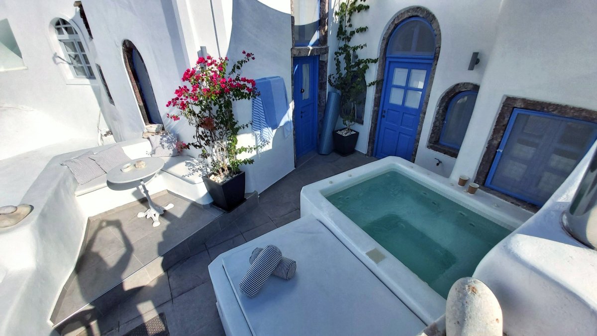 Jasně, mají tu parkoviště pro helikoptéry, jezdí sem relaxovat Leoš Mareš i Hollywood a instagram je plnej dokonalejch Oia fotek... Taky ubytování na noc od 500 €, samozřejmě bez snídaně. Se snídaní, s vyhlídkou na kalderu a vířivkou od 800 € za noc (ve skromnějším levelu).