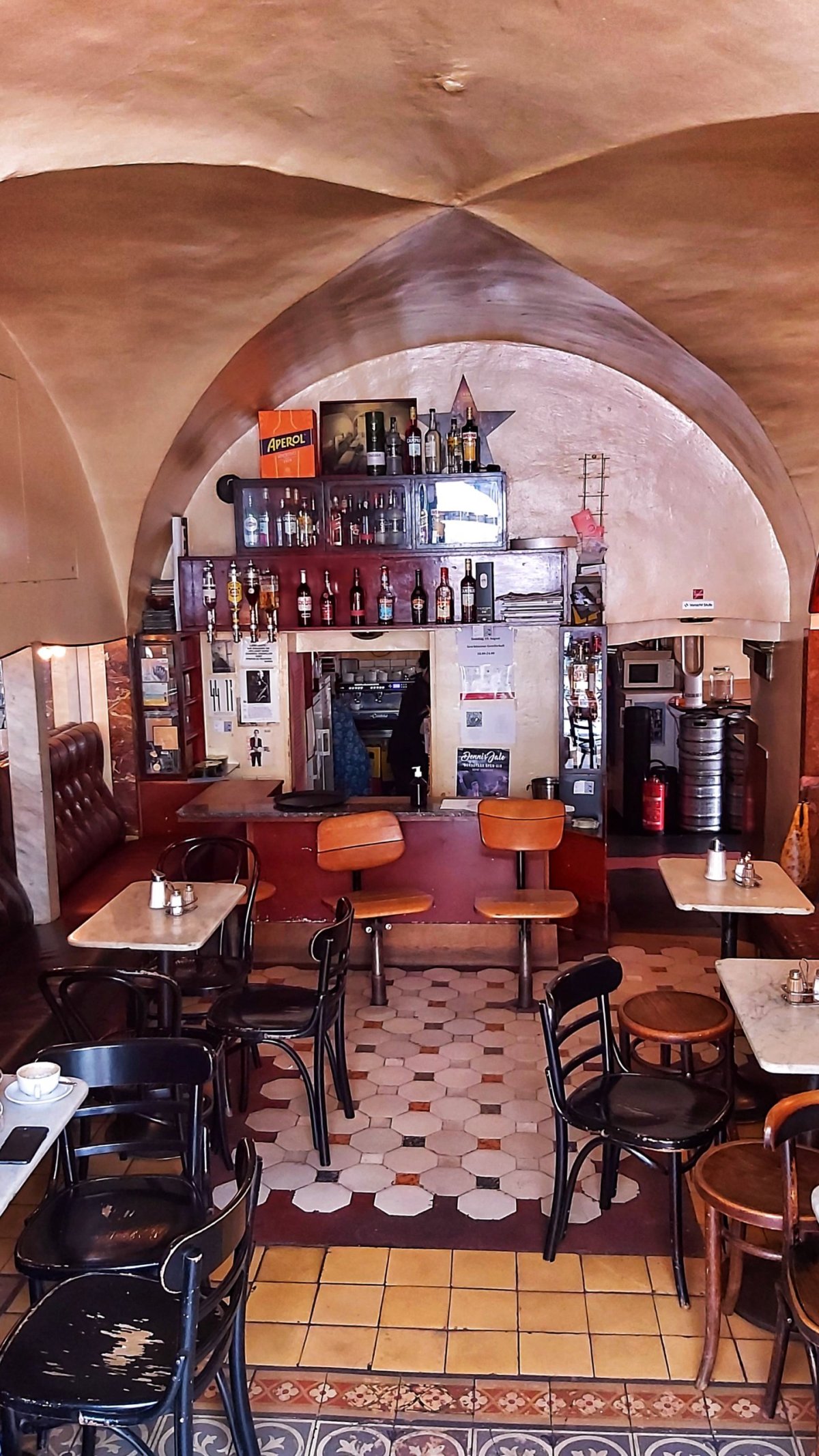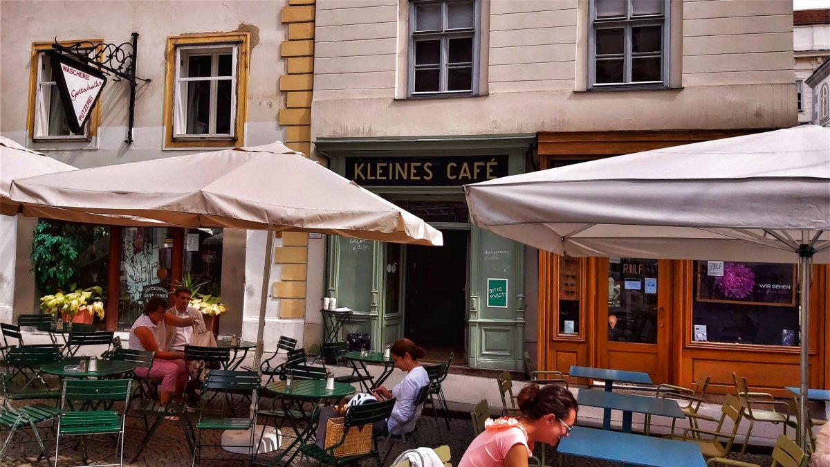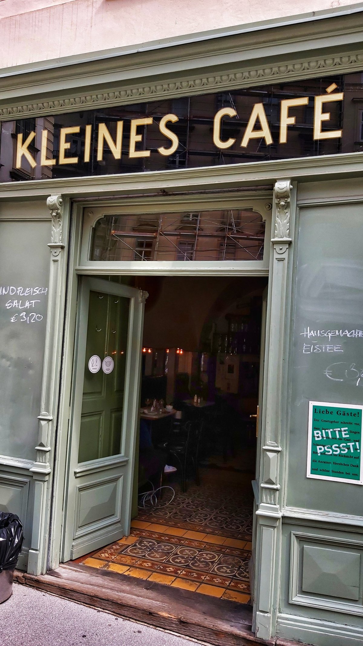 Tak toto je vůbec nejmenší vídeňská kavárna, která je jen kousek od Kostela sv. Michala, a to na Františkánském náměstí (Franciskanerplatz). Její interiér tvoří vlastně jen dvě kožené lavice a pár stoliček, stolky s mramorovou deskou, zrcadla a obyčejné žárovky. Přesně takhle kavárnu navrhl v roce 1970 tehdy začínající, dnes již slavný vídeňský architekt Hermann Czech (hezký jméno, že?) pro jednoho populárního vídeňského herce. Místní kavárník Hanno Pöschl tu má neskutečné desítky LP desek, které, pokud je na místě a v patřičné náladě, s oblibou pouští. Nejednou také rozhoduje o osudu zákazníkovy objednávky ve stylu: "Kafe?" – "Nic takového. Vy dostanete grappu!"