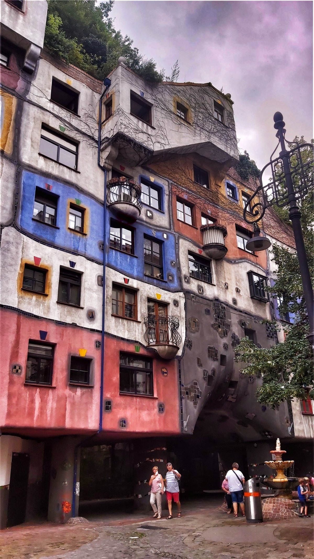 Architekt Hundertwasser byl trochu podivín a jeho stavby potěší zejména hravé duše se smyslem pro pestré barvy, rozmanitost a hlavně pro nekonvenčnost. Tedy mne stoprocentně vykouzlil úsměv na tváři a na chvilinku zamyšlení se nad tím, jaké by bylo v jednom tom nerovném a nesouměrném bytě bydlet… Hundertwasser je někdy nazývaný jako „rakouský Gaudí“ a já myslím, že trefnější přirovnání snad ani není.