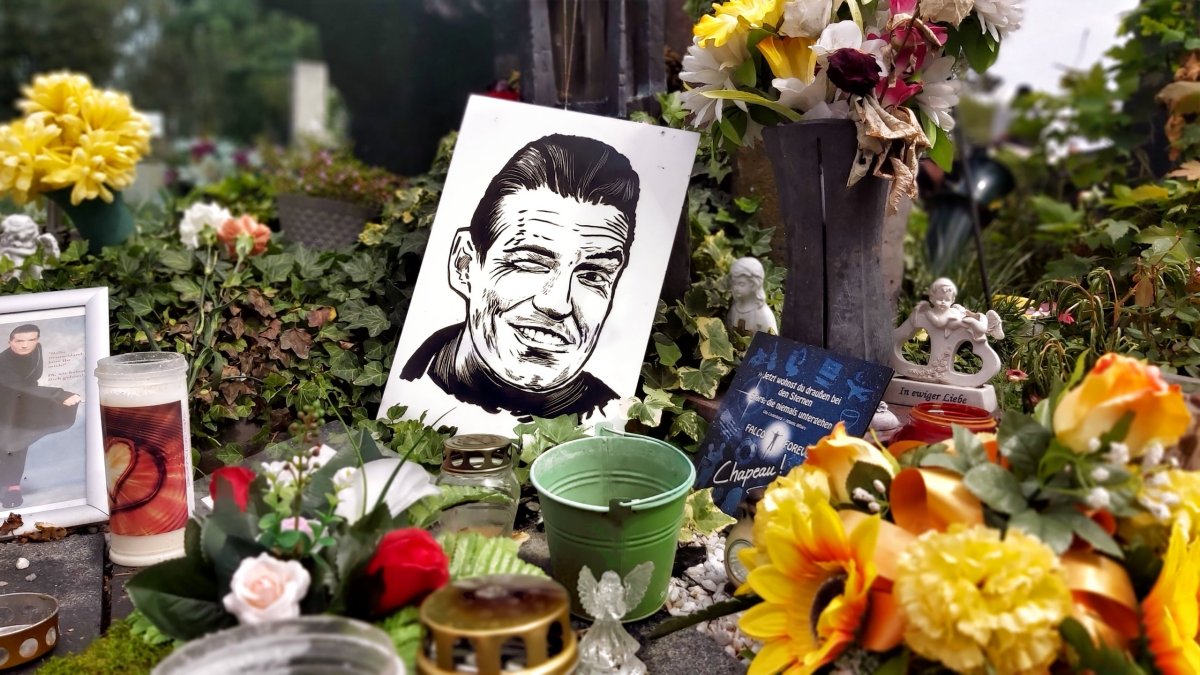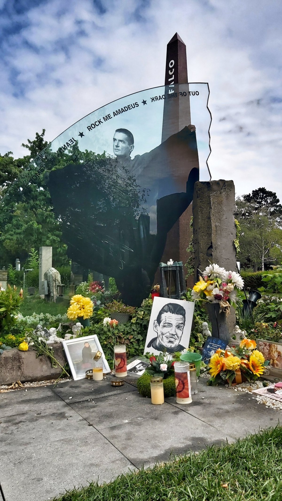 Leží zde ale také zpěvák Falco (konkrétně v sekci č. 40), jehož místo posledního odpočinku zdobí skleněné průhledné CD o průměru 2 m, uprostřed kterého je zobrazen zpěvák, a to v podobě něco mezi batmanem a andělem.