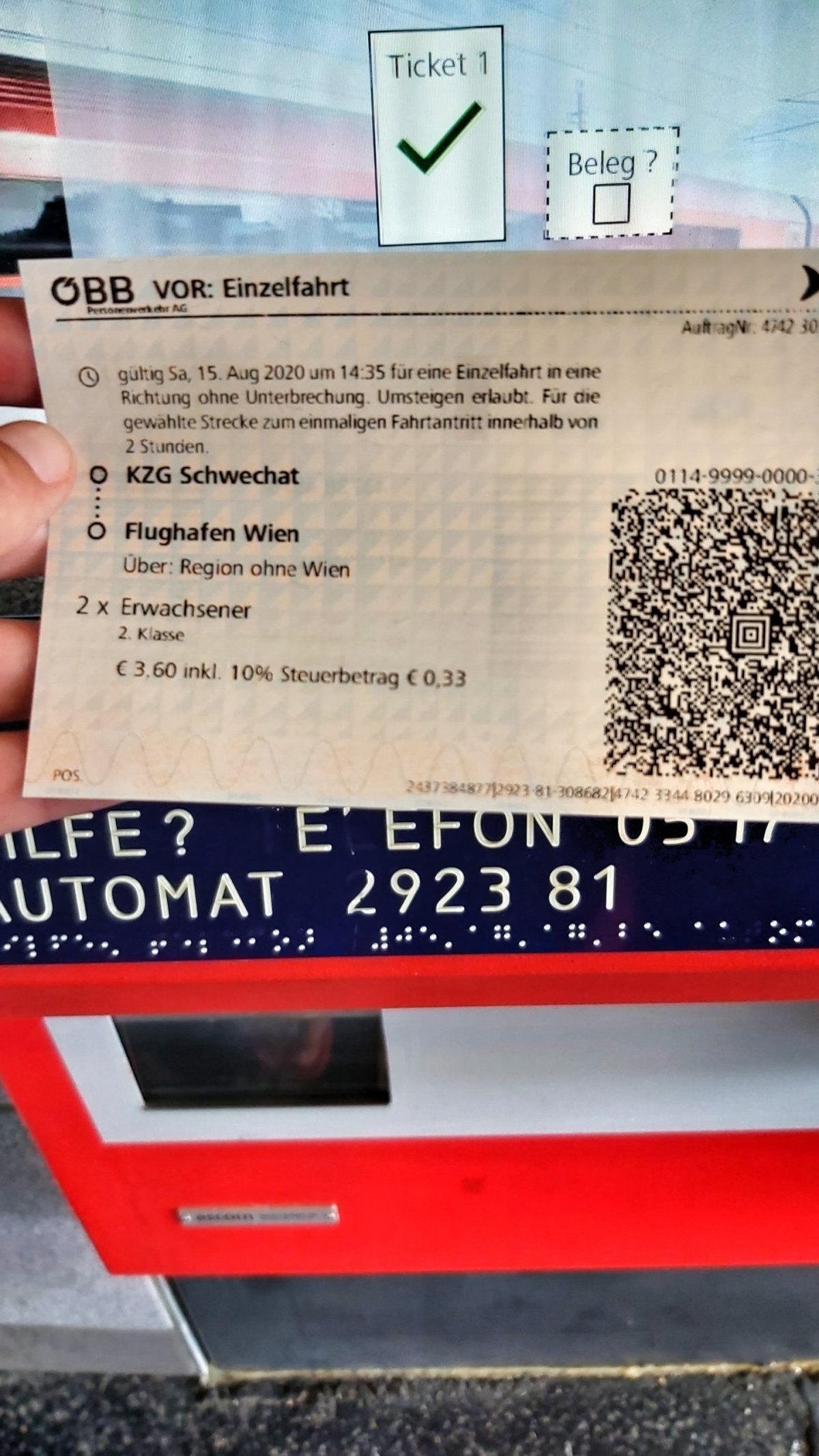 Přesun na letiště je během 10 minut, a to zmíněným vlakem z místní vlakové stanice. Jsou to dvě zastávky a vystoupíte v suterénu přímo pod letištní halou. Cena jízdenky je 1,8 € a koupíte si ji v naprosto blbuvzdorném automatu přímo na zastávce vlaku (tedy v jakoukoliv denní i noční dobu). Platba možná jak cash, tak i kartou.