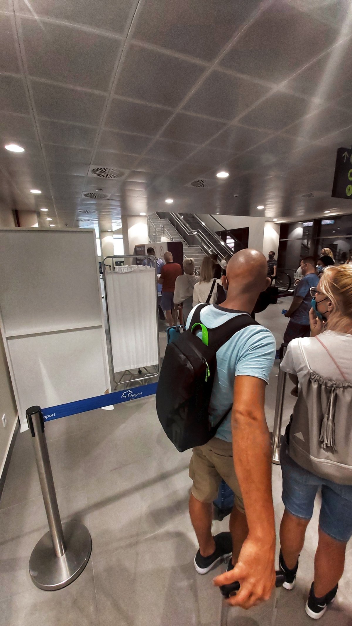 Před vstupem na palubu musíme ukázat nejen naše letenky a pasy, ale také potvrzený QR kód. Novinka. Naštěstí se mi ho včera podařilo obdržet.