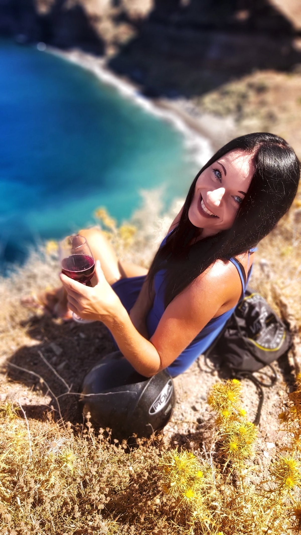 Takže pokud chcete nasrat sociální svět ZA KAČKU, kupte si letenku u Wizzair za 800 Kč z Vídně (dokonce zpáteční), ubytujte se v Perisse za 400 (korun, nikoli euro) na noc, kde to máte na pláž 200 metrů a můžete se tam smažit klidně nazí, protože tady je to každýmu fuk a zas tak moc lidí tu vlastně ani není. No a pak ta romantika, to je jasný! Půjčte si skútr za 9 € na den a do té pohlednicové Oia si zajeďte 30 minutovou boží projížďkou s výhledy na kalderu ze všech stran. Jako dá se i busem za 4 €, ale tím ji fakt neohromíte 🙈😂. Hlavně to cestou vemte přes Lidl (mimochodem jediný na ostrově), kde pro tu svou fotomodelku kupte košík jahod za 1€, vodu za 0,45 €, sobě radlera nebo chlazené pivo za 1€ (tady se na alkohol za volantem fakt nehraje), ať z toho máte něco i Vy - řidič a fotograf v jedné osobě. No a nezapomeňte přibrzdit v místní sámošce, kde 1,5 l Local Wine koupíte za 2,95 €. Ingredience na romantiku máte a teď už hurá na ten Hard Work!