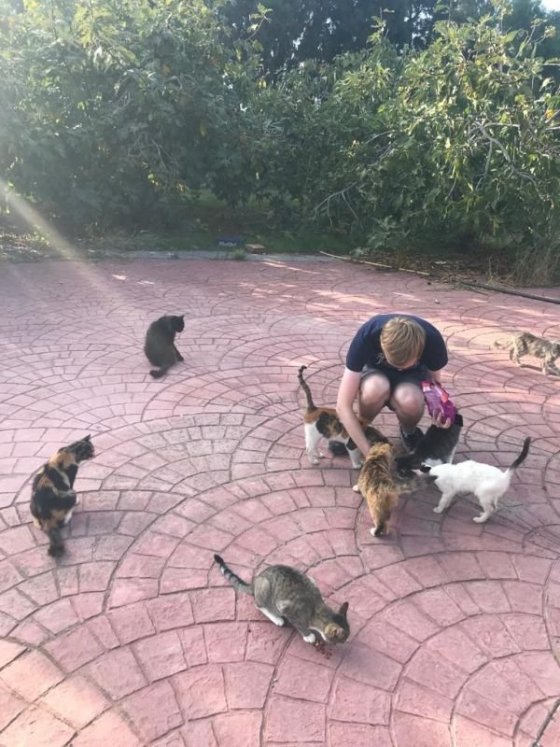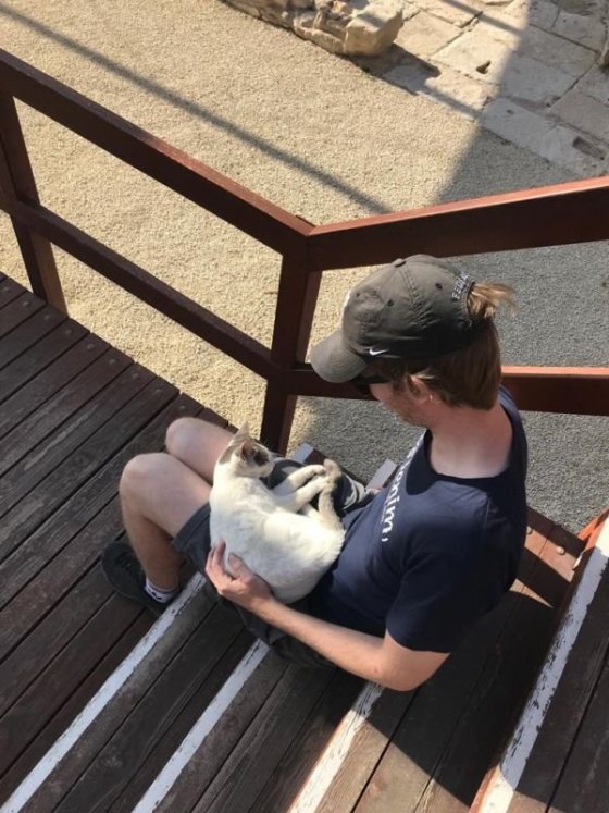 Už u této první památky se potvrdilo to, co jsme o Kypru před cestou četli – všude, ale úplně všude jsou kočky. Hlavně u památek. A jelikož já i přítelkyně kočky milujeme, tak se pro nás stal Kypr hned od první hodiny absolutním rájem. Vždycky když jsme byli unavení nebo hladoví a tím pádem i protivní, nám kočky dokázaly zvednout náladu. Hned první den večer jsme koupili v obchodě granule a od druhého dne jsme na každém místě poctivě krmili a mazlili. Kočky navíc většinou nejsou ani nijak olezlé nebo nemocné, ale jsou fakt krásné. A klidně si nás hejtujte, že krmením přispíváme k jejich přemnožení, to nám bylo fakt upřímně jedno. Zákaz krmení jsme viděli všeho všudy jednou.