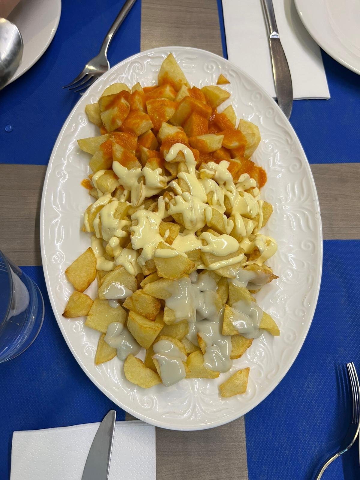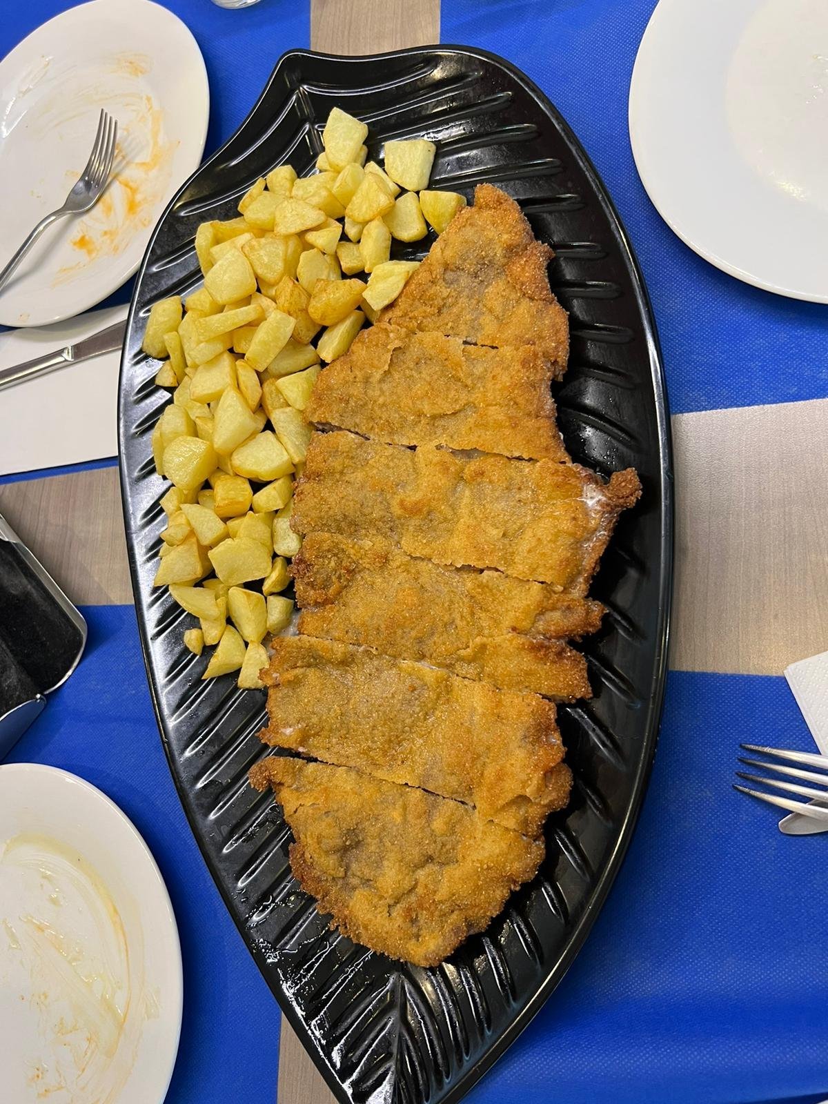 - Několikrát jsme se stavili na denní menu (menú del día). V pracovní dny ho nabízí snad každá restaurace zhruba mezi 13-16 hodinou. Cena byla obvykle 12-15 €. Vesměs by stačila 3 menu pro nás čtyři, porce byly veliké. Menu zahrnuje 2 chody (1. chod není zdaleka vždycky polévka), nápoj, dezert a/nebo kávu.