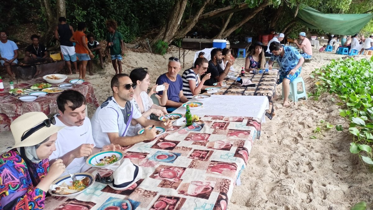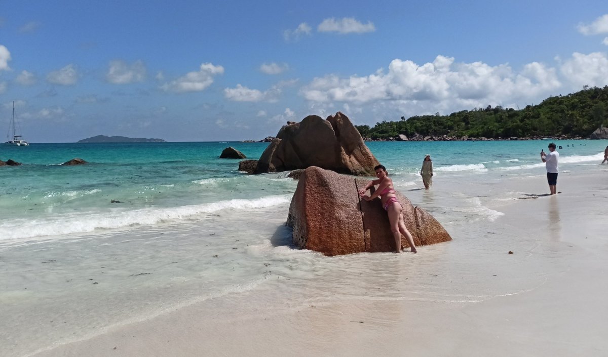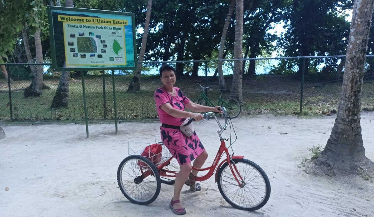 Na pokoji – ženské ortopedii leželo 8 dam různé věkové kategorie a s různými problémy. Otevřené dveře poskytovaly personálu kontrolu, zda někdo něco nepotřebuje. Jak Daniela říkala, podlaha byla mytá 3-4 krát denně, prach se utíral taky každou chvíli. Nápoje tam pacienti nedostávají. Když jsme jely za Danielou prvně, musely jsme místní MHD do Victorie a pak přestoupit na autobus k nemocnici. Požádaly jsme lidi v autobusu, aby nás upozornili, až budeme u nemocnice. Kde je nemocnice jsme pochopily, když celý autobus křičel „hospital“. I když vždy říkám všem, se kterými cestují, aby si nebrali moc oblečení, Daniela měla toho docela dost. A když říkala, že v nemocnici dámy nejsou v nočních košilích nebo pyžamech, jako u nás, ale se 4 krát denně převlékají do barevných šatů, tak jsme Daniele vozily taky šaty, které čekaly v hotelové skříni na využití. A tak se Danča v tomto přizpůsobila a byla taky za „parádnici“. Největším překvapením pro nás a Danielu bylo, když v den, kdy měla narozeniny ji navštívila v nemocnici vedoucí hotelové recepce Josephine s velkým košem čerstvého ovoce a krásným přáním podepsaným všemi zaměstnanci hotelu.My s Evou jsme ve dnech, kdy jsme nejezdily do nemocnici, jezdily na výlety na okolní ostrovy. Byly to ale „komerční“ výlety. Na ostrově Praslin jsme byly v zahradě, kde se pěstují pověstné kokosové ořechy ve tvaru „prdelek“, „proběhly“ jsme pláži, trochu se i vykoupaly. Prostě za tak krátkou dobu návštěvy se nedá říct, že jsme si to užily. Krásné pláže, tyrkysové moře 7 odstínů tyrkysové prezentující se pověstnými balvany. Ostrůvek La Dique neměl chybu. Tady se jezdi jenom na kolech a já si půjčila tříkolku. Rozumí se, že velkou. I když se místní smáli, že to jsou kola pro děti, tak já si myslím, že k nim můžou přidat i starší dámy“. A výlet za šnorchlováním? To byl podle mne jeden velký „obchodní“ podvod. Šnorchlování v místech, kde už nejsou ani ryby, pak oběd na ostrově s návštěvou zahrady, kde se chovají sloní želvy. Mimochodem, těch jsou na Seychelách stovky. Bylo nám líto, když nás taxikář, průvodce po ostrově Mahe, dovezl k místu, kde se chovala tato zvířata na jídlo. No jo, někde se nejí hovězí, někde vepřové, tady je lahůdkou želva. Jiný kraj, jiný mrav. Při cestách si na takové „zvyky“ musíme prostě zvyknout nebo být aspoň na to připraveni.