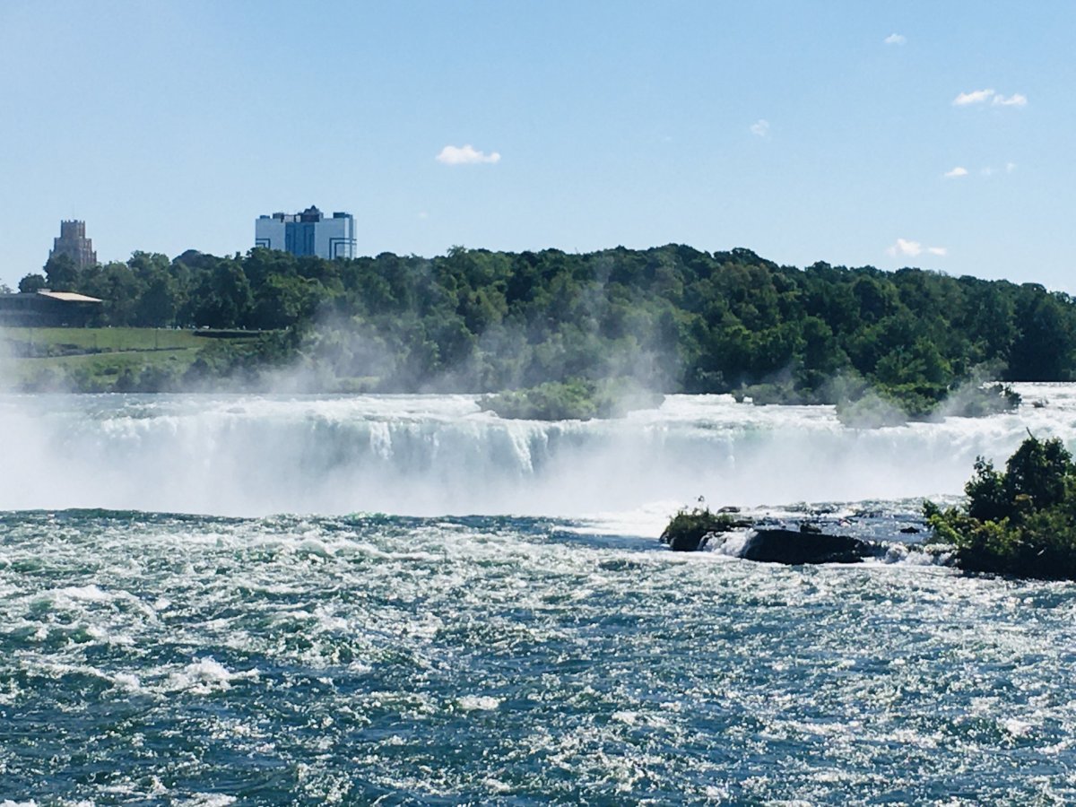Z letiště mě vlak UP Express doveze do centra na Union Station. Místa, kde kromě vlakového nádraží je i autobusové odkud budu často vyjíždět za poznáním a také stanice metra. Můj hotel Neil Wycik leží na Edgar st. East nedaleko od Dundas Square jemuž se říká kanadská Time Square. A opravdu to tady žije ve dne v noci. Pouliční umělci, svítící a blikající neony a reklamy. Ubytování je čistě spartánské. Pokojík 6,5m2, židle a stůl. Absence televize, zrcadla i ramínek. Společný záchod a koupelna pro šest pokojů. Naštěstí minimálně ostatními hosty využívané, protože tak jsem ony místnosti opustil, tak jsem je i druhý den našel. Renomé názvu hotel zachraňuje však slušná snídaně. Teda jestli přijdete mezi prvními, pak už je to boj o jídlo. To vše za tisícovku za noc. Tohle místo mám opravdu jen na přespání, program mám totiž nabitý. Hned zítra brzy ráno mám v plánu headline celého kanadského tripu, Niagarské vodopády!!