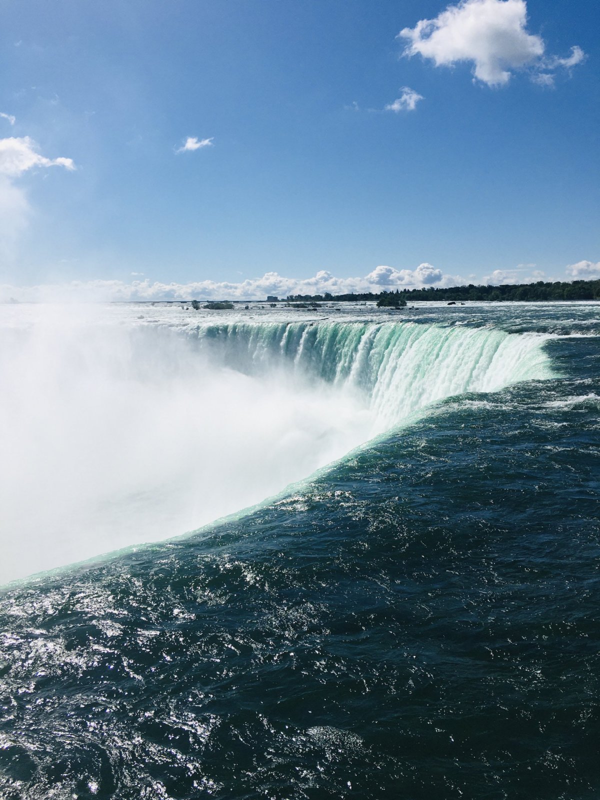 Stavíme bus pár desítek metrů od vodopádu. Vyskakuju rychlostí nadrženého samce. Chci tu nádheru co nejdřív vidět. Co se děje před mýma očima mě však normálně dostalo. Lapám po dechu a lesknou se mi oči. Přímo přede mnou obrovský vodopád ve tvaru podkovy o šířce 400 metrů v celé své kráse! Z výšky 51 metrů padají proudy vody kolmo dolů, kde naráží na hladinu, vrací se vzhůru aby se rozprskávali zase zpět. Všude bílá pěna a miliony kapek. I o tři sta metrů dál ještě jemně prší a mží. Úžasné vodní divadlo!!!
