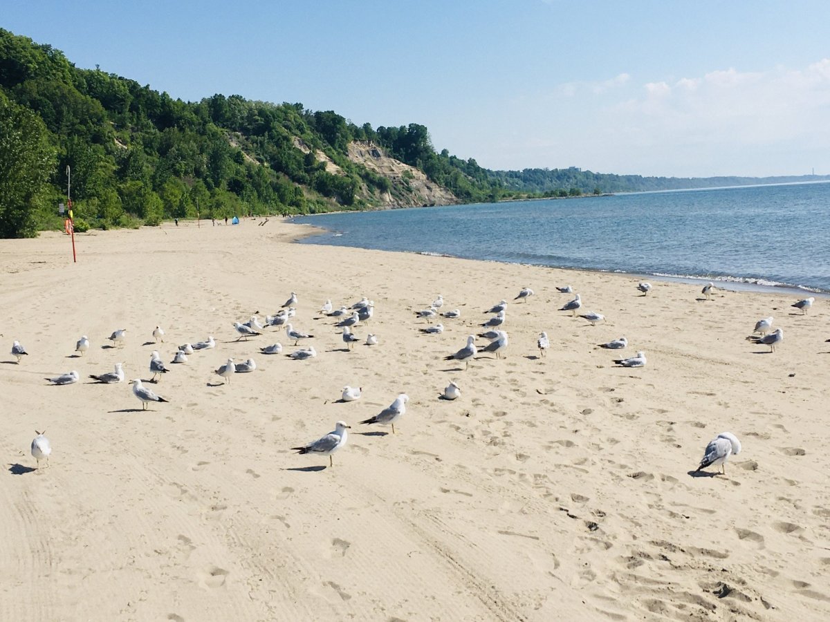 Když jsem ještě před cestou do Kanady doma gůglil co v okolí Toronta navštívit, pořád na mě vyskakovali útesy Scarborough Bluffs s jednou a tou samou fotkou. Tak jo. Jedu tam. Leží ve východní části města a jsou součástí parku. Opouštím autobus 175 na konečné a jsem dost nasr…Typická navoněná bída. Ve skutečnosti je to pláž s pár skalami jakých máme v Česku tisíce. Tak se alespoň projdu po kotníky ve vodě tam a zpět. Je jako led, připomíná mi to portugalské Algarve.