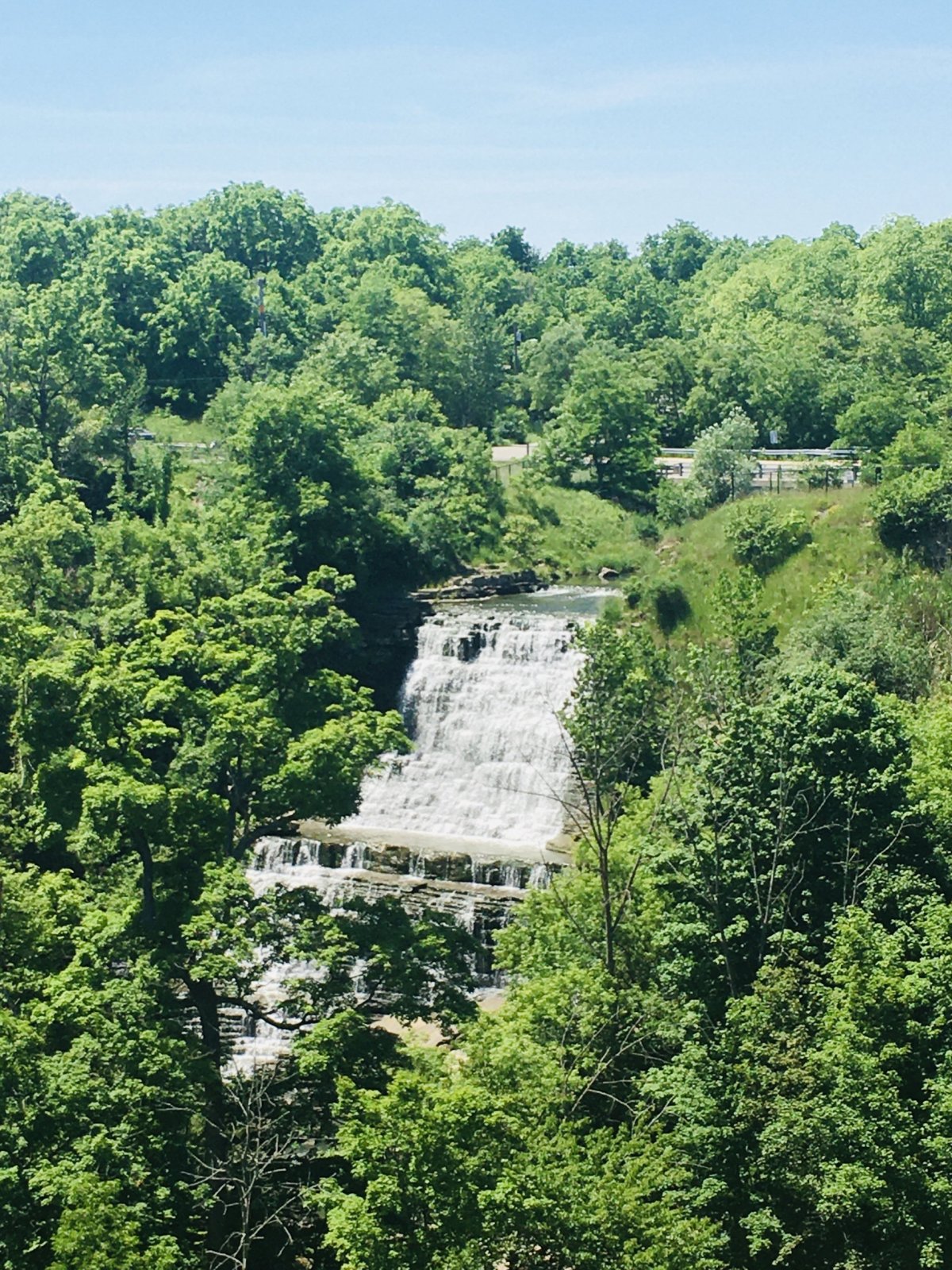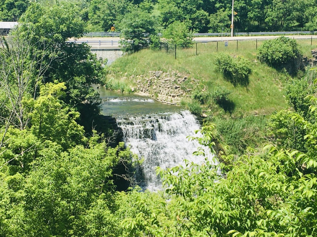 Asi 70 kilometrů západně od Toronta leží známé přístavní město Hamilton. V jeho bezprostředním okolí se nachází několik menších vodopádů a tak po životním zážitku s těmi Niagarskými vyrážím opět busem z Union station za přírodními krásami. Z centra, kde je konečná jsou nejblíže tři ležící v přijatelné vzdálenosti od sebe. Co však není přijatelné je těch asi dvanáct kilometrů k prvnímu z nich a tak volím přes dva přestupy střídavě chůzi a jízdu MHD. Konečně nacházím první z nich Albion Falls. Dá se pozorovat ze dvou asi padesát metrů vzdálených vyhlídek a může být tak pět, šest metrů široký a okolo deseti vysoký. Přímo k němu dolů, kde se tvoří jezírko mě nepouští vysoký plot s ostrými hroty opatřený výstražnými cedulemi o pokutě 10 000,- dolarů za přelezení.