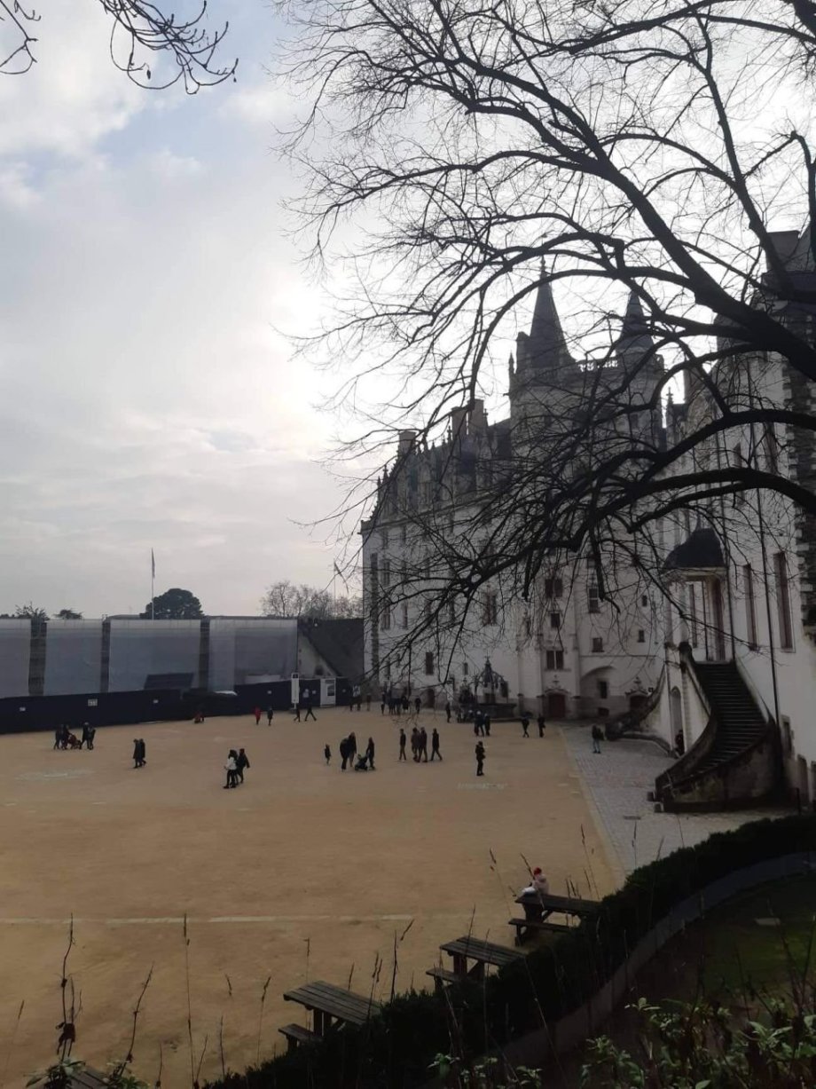 My jsme měli hotel Appart'City Nantes Centre, právě v centru, a to 5 minut chůze od hlavní dominanty Nantes - Zámek vévodů bretaňských (Château des ducs de Bretagne). Právě tam jsme vyrazili, procházet po hradbách můžete zadarmo, a opravdu chvíli to zabere. Zámek je to opravdu velký a moc krásný. Nantes je kouzelné v tom, že ty hlavní památky obejdete pěšky. Hned za zámkem je katedrála, u které byli vánoční trhy. Ty doplnilo kluziště a guma, po které hlavně děti sáňkovali. No, sníh tu napadne jen výjimečně. My jsme měli kolem 12 stupňů, ale aspoň se vyblbnou...