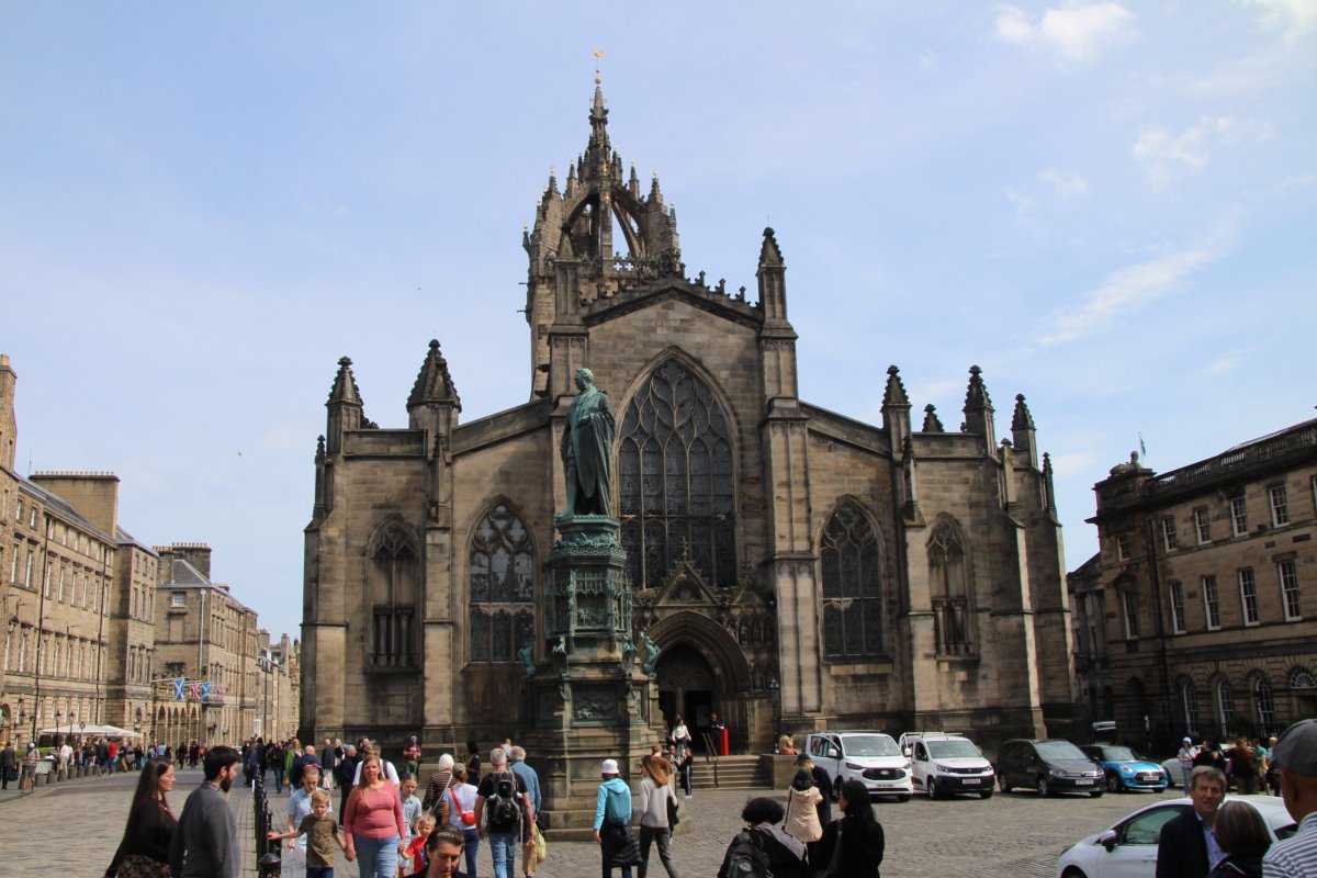 Po snídani jsme pěšky vyrazili do města. Nejprve jsme vyšli na Calton Hill, což je krásná vyhlídka, kde máte Edinburgh jako na dlani. Poté jsme šli na hlavní třídu Royal Mile, která vede od hradu Edinburgh Castle až po Palace of Holyroodhouse, což je královská rezidence. Cestou je budova parlamentu a v uličce Bakehouse Close se nachází budova, která v Cizince byla Jamieho tiskárnou. Pro změnu trochu z Harryho Pottera – Victoria Street byla pomyslnou předlohou Příčné ulice a nedaleko se nachází hřbitov Greyfriars Kirkyard, kde se J. K. Rowling inspirovala některými jmény. Vrátili jsme se do Princess Street a odtud jsme dojeli tramvají ke královské jachtě Britannia.