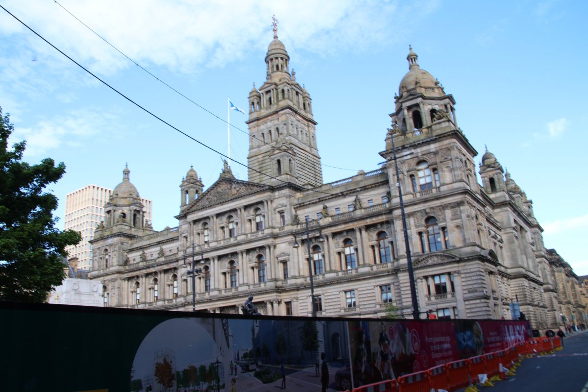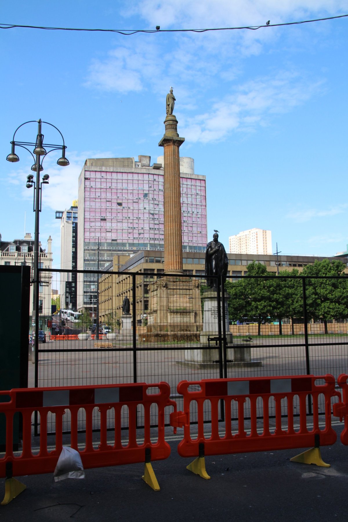 Přírodu jsme na chvíli vyměnili za město a jeli jsme se podívat do Glasgow. Naštěstí jsme tam neměli v plánu být dlouho. Ač je větší než Edinburgh, tak se nám moc nelíbil. Průmyslové město, občas podivné existence a jako bonus – centrální náměstí George Square se rekonstruovalo.