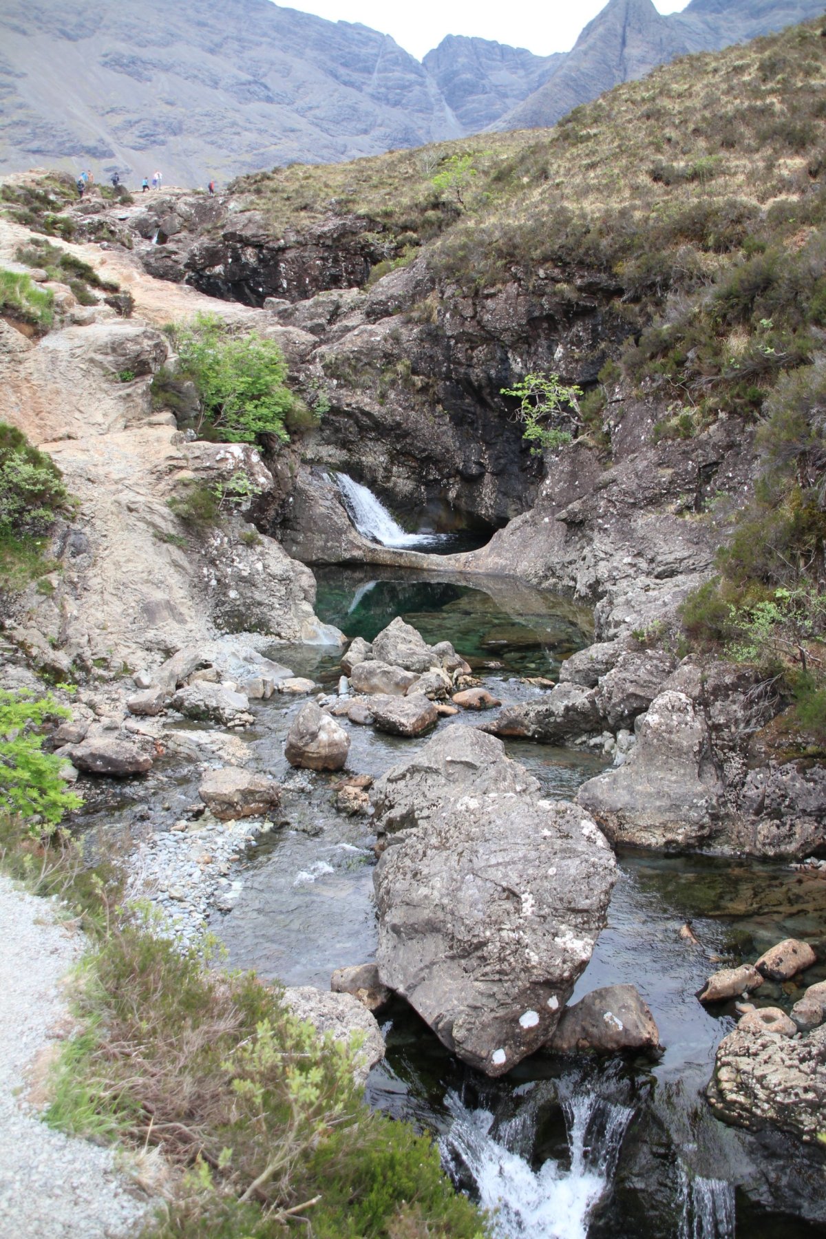 Skye je specifická oblast Skotska. Je tu méně lidí, mnohem více ovcí a ještě proměnlivější počasí. Ovce se pasou ideálně u silnice, která je tak úzká, že tu existují místa na potkávání aut. Příroda je zde nádherná. Jenže tuto oblast má na svém „bucket listu“ hodně lidí, takže turistů je tady snad více než místních. První naše kroky vedly k majáku Neist Point Lighthouse, což je nejzápadnější bod ostrova. Maják tu stojí od roku 1909. O kousek dále jsme se cestou zastavili na nejlepší kávu ostrova Skye v kavárně Cafe Lephin. Odtud jsme pokračovali do palírny Talisker, což je nejstarší palírna na ostrově (od roku 1830). Můžete jít na prohlídku s ochutnávkou (děti sem smí až od 8 let kvůli nebezpečí) nebo si jen něco koupit v místním obchodě. Další naše cesta vedla k jezírkům Fairy Pools, což je jedna z mála pěších tras vhodných i pro kočárek (ne městský, ale trochu terénní).