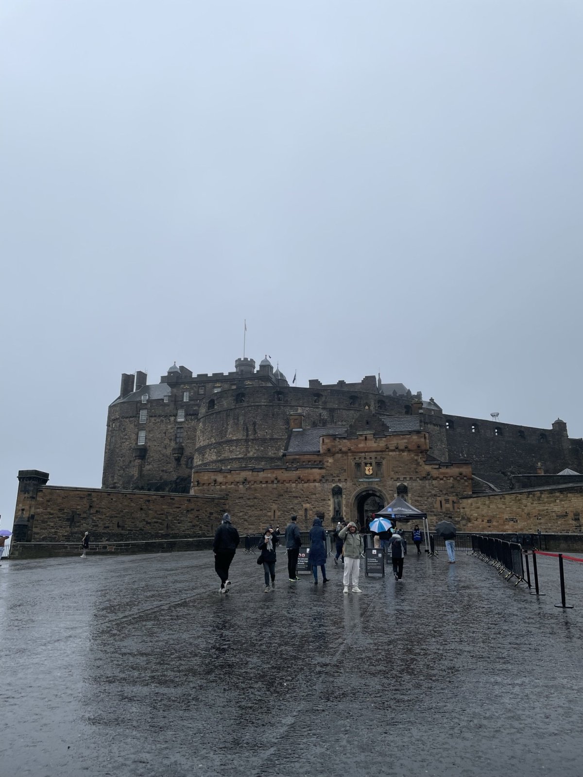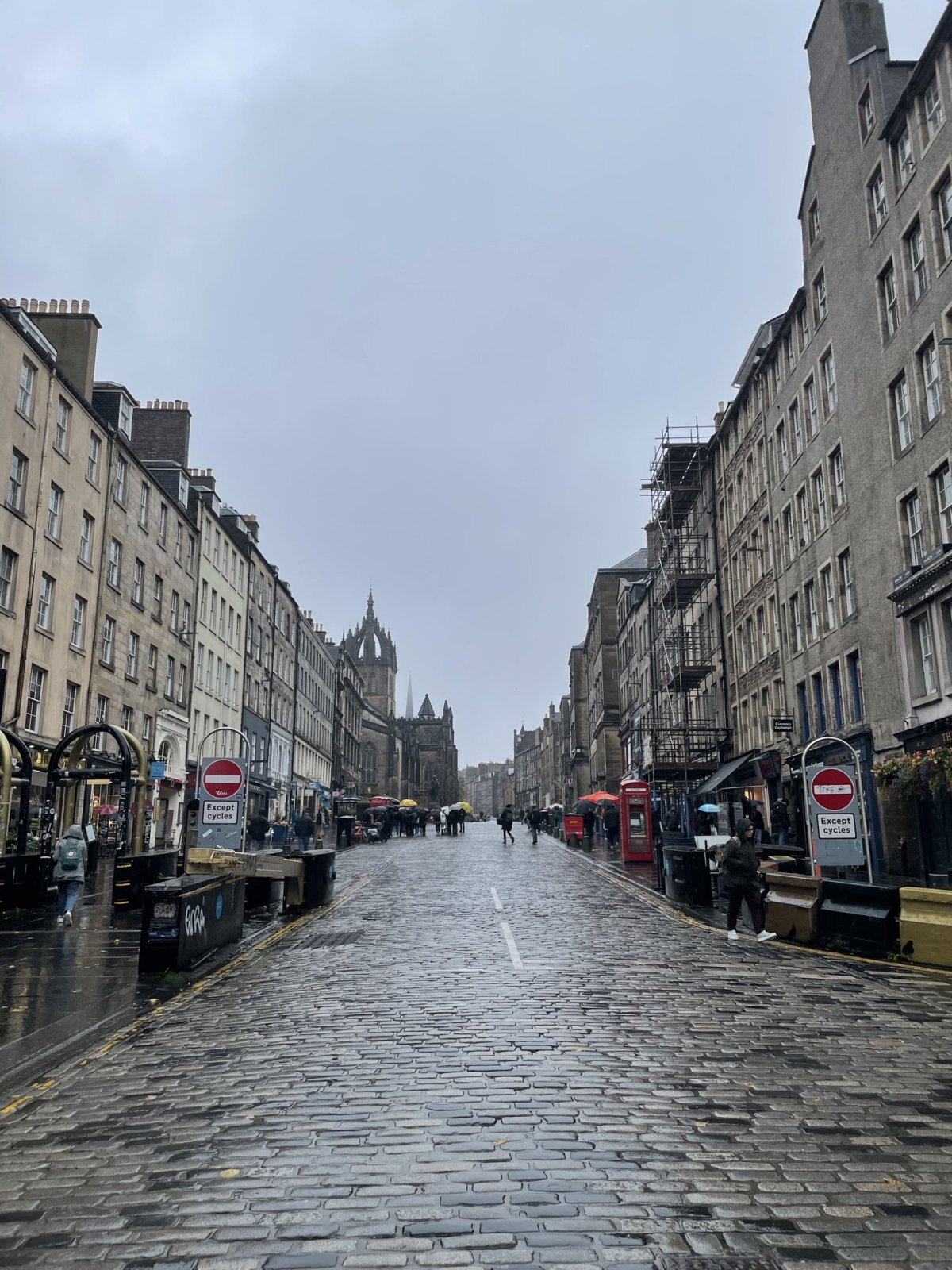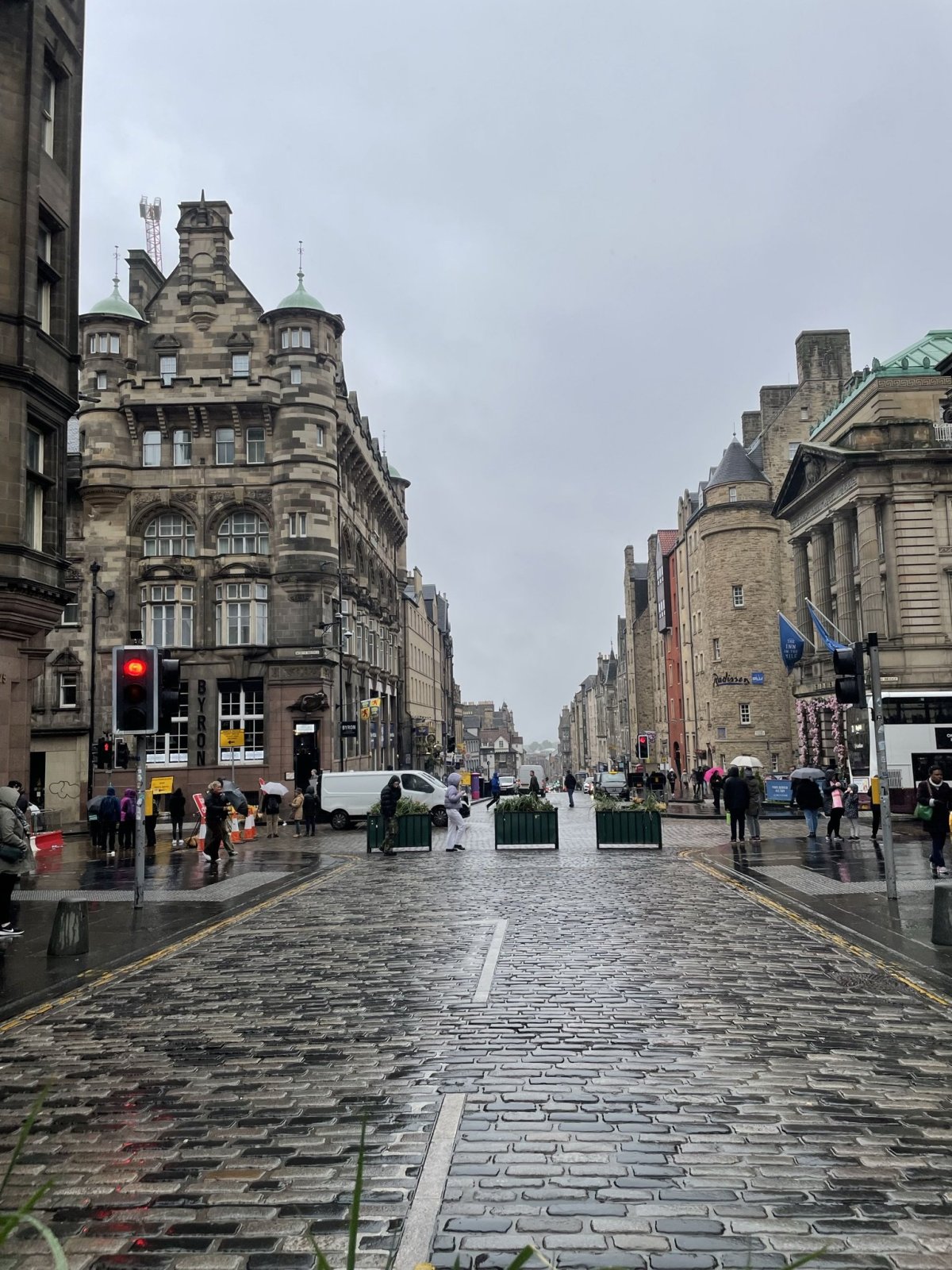 Prošli jsme centrum, došli jsme až k řece, tak jsme se kolem ní prošli, taková pražská Náplavka, jenom s deštěm. Zašli jsme si na kafe a na jídlo se ohřát a usušit. Odpoledne jsme se rozhodli, že pojedeme zpátky do Edinburghu, že nemá smysl chodit v takovém počasí. Po cestě zpátky se vyjasnilo a začalo svítit sluníčko. Část výpravy se jela ještě v Edinburghu podívat na Holyrood Palace, já tam nejela, takže nemám žádnou fotku, ale podle toho co mi pak říkali, tak to stojí za prohlídku. Poté jsme se šli už loučit s Edinburghem, protože jsme v neděli hodně brzo ráno odlétali.