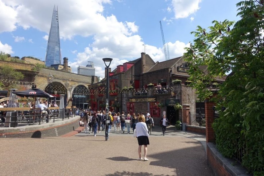 Schovává se pod železničními mosty, pod kterými se mimochodem také skrývá filmová lokace - dům Bridget Jonesové, je pravda, že je to jen o tom, že vidíte ty dveře a dům, ale o kolik víc chcete, když hned za rohem je mrakodrap the Shard a hned vedle Southwark Cathedral?