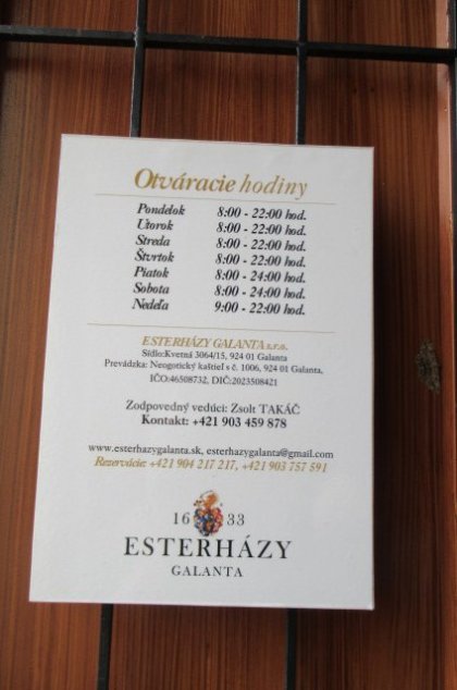 Esterházy Galanta Wine and Coffee počas svojho pobytu v Galante by ste sa určite nemali vynechať návštevu kaviarne vinárne a novootvorenej reštaurácie Estzerházy v krásnych priestoroch neogotického kaštieľa sa ocitnete v dobe renesancie baroka či neogoticky pri výbornom jedle káve a zákuskov môžete obdivované portréty členov rodu Esterházyovcov a dozvedieť sa o histórii mesta a jednotlivých členoch.