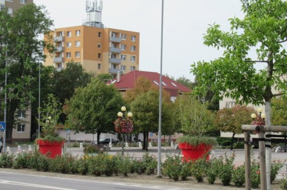 Pamätná tabuľa na bývalom župnom dome, v ktorom boli umučení roku 1919 trinásti príslušníci maďarskej červenej armády. Jej autorom je Vojtech Löffler a bola odhalená roku 1959.