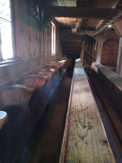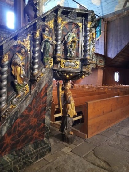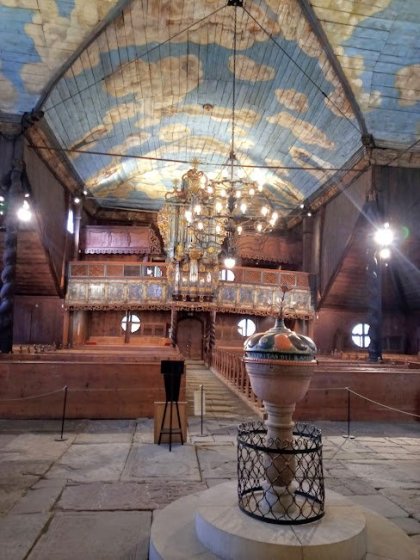 Kostol pochádza z čias náboženskej neslobody protestantov, preto musel byť postavený výhradne z najlacnejšieho stavebného materiálu – dreva. Traduje sa, že pri stavbe pomáhali švédski námorníci, keďže vrch interiéru pripomína obrátenú provu lode a okná sú okrúhle ako na lodiach.