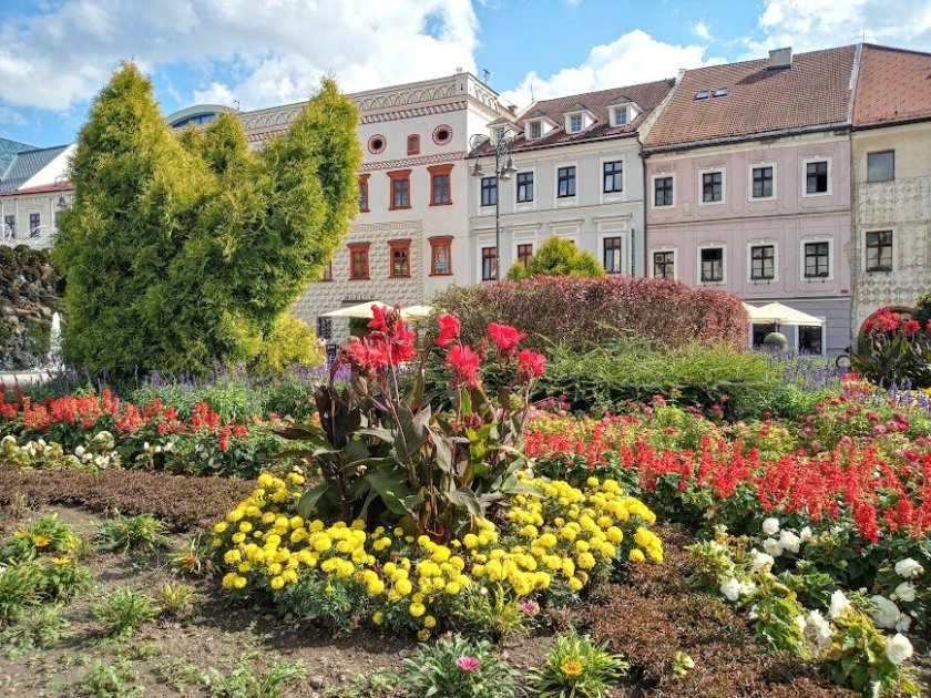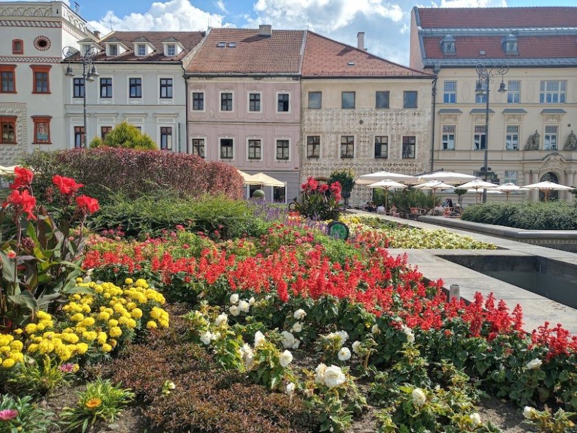 Viac ako sedem storočí existencie mesta sa odrazilo aj v jeho architektúre, ktorá obsahuje stavebné slohy od románskeho cez gotický, renesančný, barokový až po klasicistický. Zvláštnosťou je urbanistické riešenie námestia do vidlicového tvaru s radnicou umiestnenou v strede a ukončením mestským hradom.