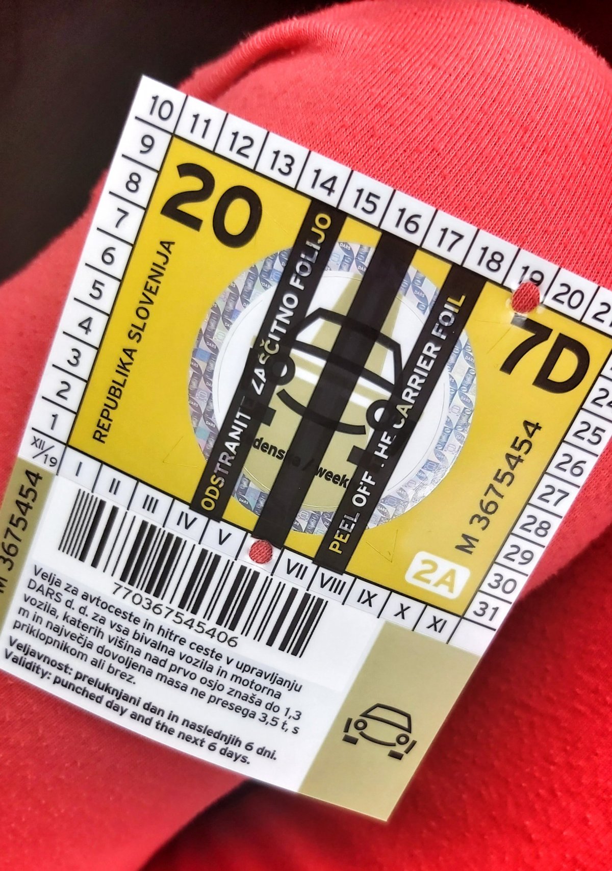 Známky: České zpoplatněné silnici se vyhneme starou cestou přes Pohořelice, rakouskou dálniční známku mám z minulého tripu, takže kupují pouze slovinskou známku za 15,4 euro.
