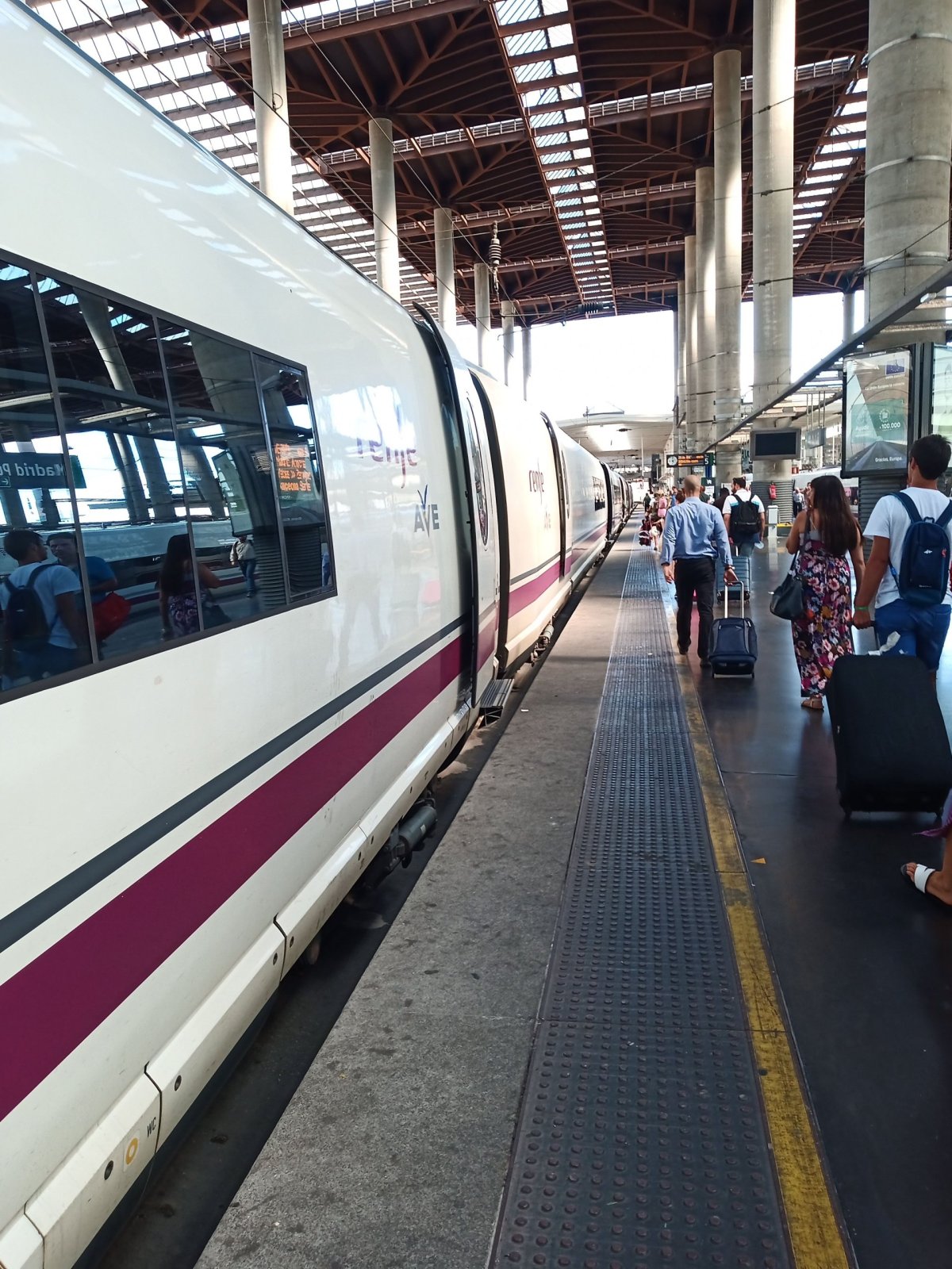Vlak brzy zvýší rychlost až na nějakých 310km/ h o něco méně než ve Francii což je v noci tak jediné čeho si všimnu, ale další den jedu stejným rychlovlakem na jih Španělska . V Santiagu probíhá večer klasická kontrola jako při nástupu do vlaku ve francouzském Metz do TGV .
