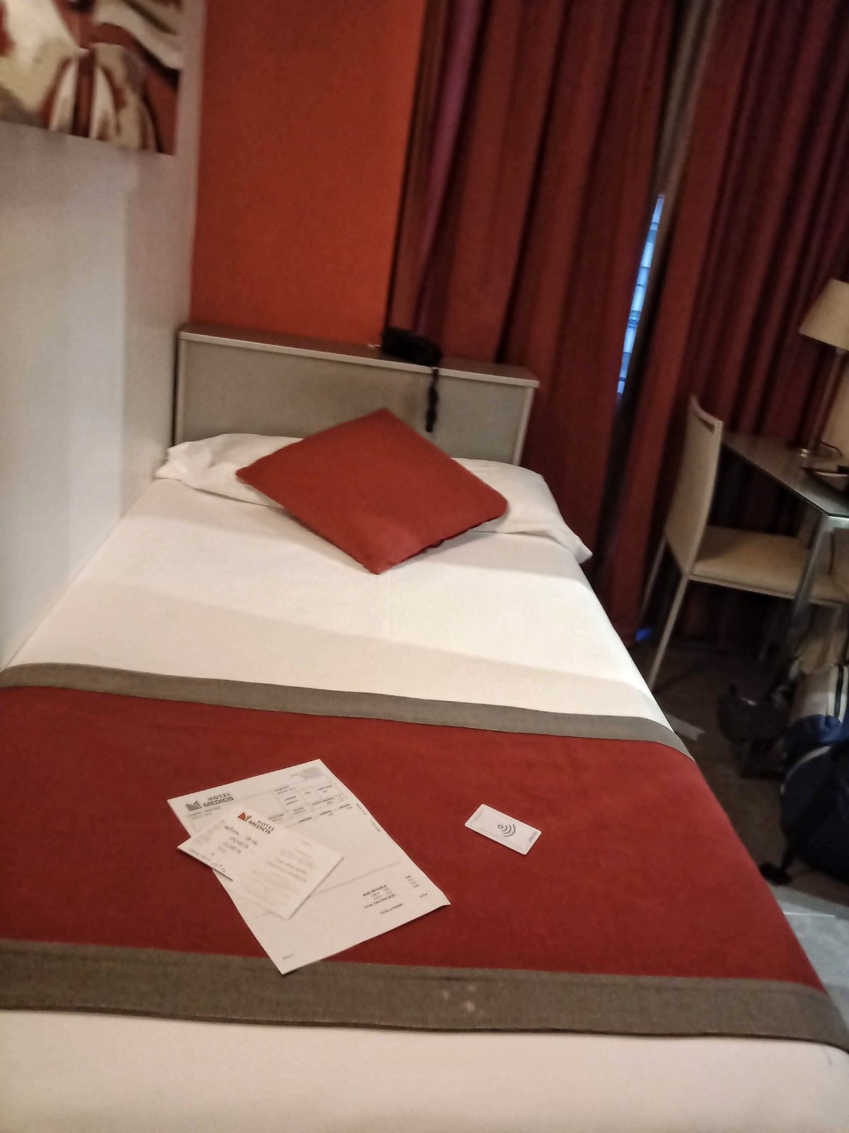 Pozdě večer přicházím od nádraží na hostel. Ve Městě jako v každém další Evropském velkoměstě je cítit hlasitá večerní zábava Posilněná alkoholem. Hostel jsem rezervoval takový abych mohl přijít opravdu i po půlnoci i v případě zpoždění vlaku. I když zpoždění na vysokorychlostní železnici nebylo, Ulehl jsem na hostelu téměř o půl jedné v noci.