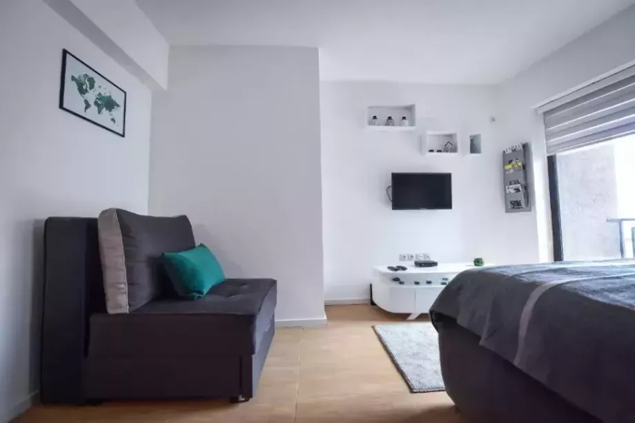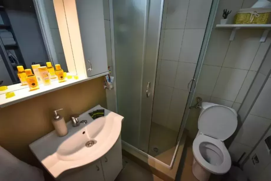 Ubytování máme asi 15 min. chůze od autobusového nádraží. Najdeme ho na první dobrou, a to i s offline mapami. Je to úplně fungl nová bytovka. Chvíli si myslíme, že zde budeme bydlet úplně samotní, nicméně pár bytů už zde zabydlených je. Každopádně na našem patře jsme samotní. Ubytování je jedním slovem pecka! Úplná novostavba a všechno nové, moderní, čisté, krásné. Jinými slovy – zatím asi ten nejkrásnější a nejdokonalejší byt, v jakým jsem kdy na svých cestách bydlela. Žádný přepych, nic zbytečného, ale současně zde vůbec nic nechybí. Dokonce ani žehličky a žehlící prkno 😂😂 I na malém prostoru ideální řešení rozložení všeho. Ubytujeme se, jsme vážně spokojení, všechno odpovídá tomu, co jsme si zamluvili z pohodlí domova na bookingu. Navíc toto nádherné ubytování pro dva na 3 noci vychází na 1500 Kč, tedy 750 Kč/osoba. Co víc si přát?!
