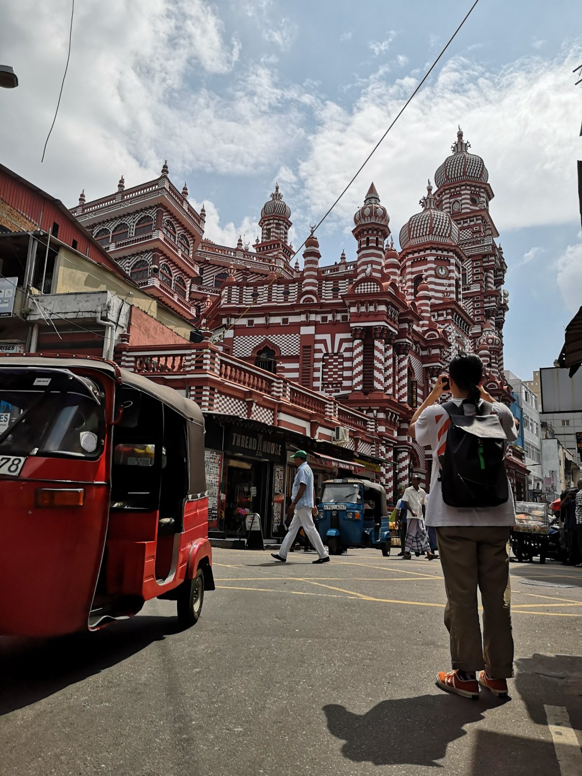 Po náročných dvanácti hodinách cestování (ve skutečnosti jsou to lety dva, oddělené dvouhodinovým přestupem v Dubaji) usedá nad ránem místního času let společnosti Emirates Airlines na ranvej hlavní srílanského mezinárodního letiště v Negombu. Po vzoru hesla: "Pokud chceš co nejdříve překonat jetlag, snaž se co nejříve přizpůsobit místnímu času", jsme opouštěli palubu letadla s vědomím a očekáváním dlouhého dne. První věc, co nás zarazila, byly obchody s pračkami a podobnými velkými domácími spotřebiči přímo v letištní hale. Prostě jiný kraj, jiný mrav. Po vyřízení nezbytných záležitostí jako pokoření imigračního úředníka, pořízení místní sim karty a výhry několika desítek tisíc srílanských rupií v letištním bankomatu výměnou za odečtení příslušné částky z českého účtu jsme se mohli vydat vzhůru za dobrodružstvím do místní "prádelny". Vzhledem k časovému presu jsme byli nuceni se co nejrychleji v poměru cena/výkon přepravit do hlavního města Colomba, což trvalo příměstským autobusem ve velmi hustém provozu slabší půldruhé hodiny. Protože jsme měli navečer zakoupeny lístky na vystoupení tradičních tanečníků do pět a půl hodiny a 120 kilometrů jízdy vzdáleného Kandy, bylo nutné stihnout vlak v 11:00 hodin. Takže jsme si hned po příjezdu do centra Colomba šli zakoupit lístky na vlak, protože systém místních drah funguje na principu "kdo dřív přijde, ten dřív jede" (často se stane, že lístky na určitých tratích bývají v exponované časy vyprodané). Zbývající necelé dvě hodiny jsme využili k "povinné" návštěvě hlavním colombských atrakcí jako je hinduistický chrám, červenomodrá mešita, plovoucí trh a centrální čtvrť Pettah s překřikujícími se trhovci s všemožným zbožím pochybných kvalit. Pak jsme se rychle občerstvili v hotelu (lokální název pro pouliční restaurace), kde jsme dostali první lekci v jezení rukama (Srílančané věří čistotě svých rukou, příbor zásadně nepoužívají) a honem rychle na vlak. Na ten jsme doběhli na poslední chvíli a byl tak nacpaný, že se téměř musela odehrát scéna známá z japonských vagónů metra, kdy se cestující vzájemně tlačí do vozů, aby se tam vešli. My jsme se tak nasoukali snad na poslední místečko, které ve vlaku zbývalo. Celou cestu strávili ve stoje v uličce hned za oteřenými dveřmi jedoucího vlaku nahuštěni více než lístky čaje v čajových sáčcích. Ani to však nezabránilo prodavačům všelijakých pochutin a nechutin korzovat neúnavně celým vlakem tam a zpátky a donekonečna vykřikovat název nabízeného proviantu.