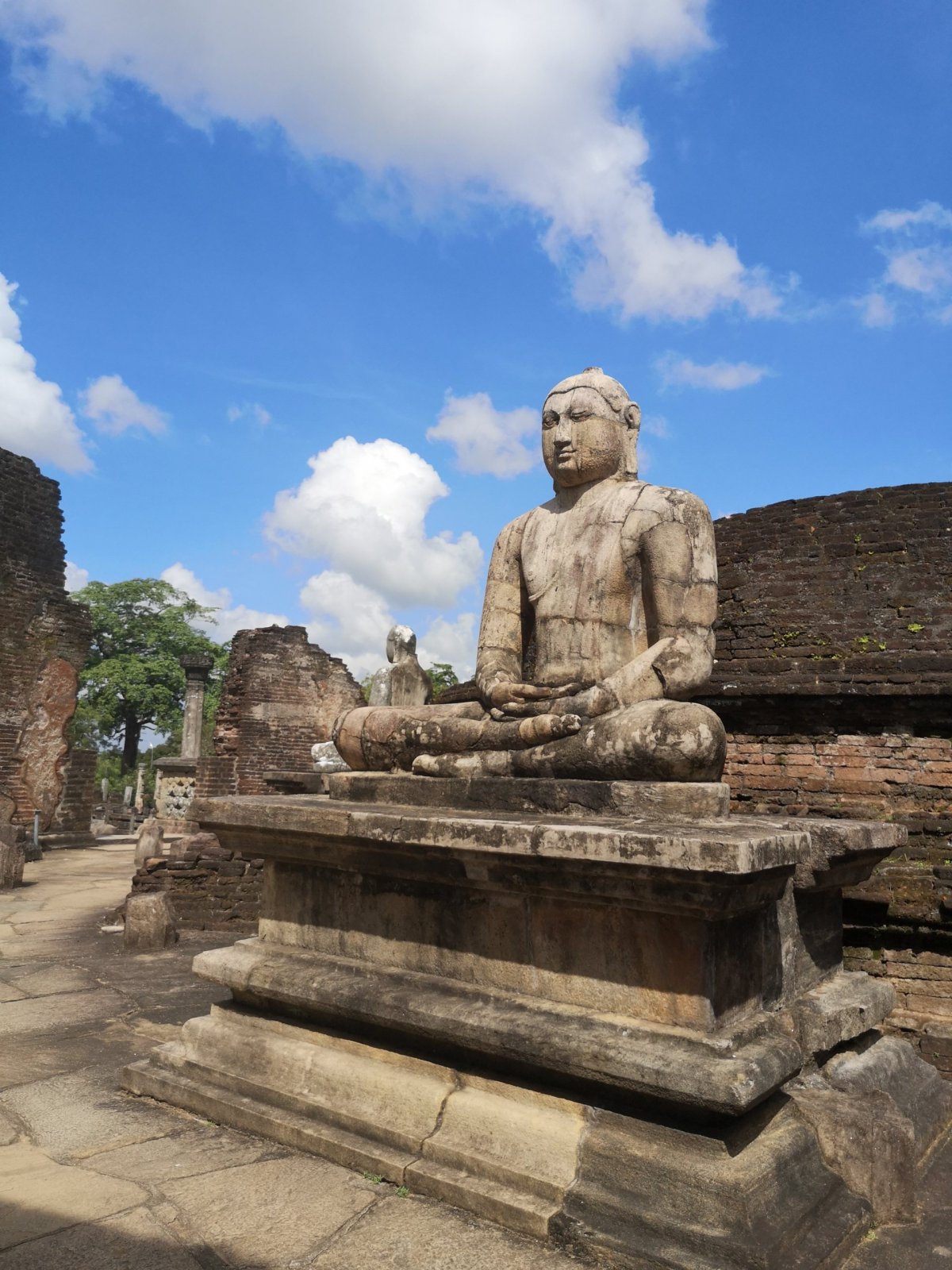 V ten samý den jsme navštívili ještě pozůstatky téměř tisíc let starého královského města Polonnaruwa, města zapsaného na seznamu Světového kulturního dědictví UNESCO. Jde o areál s několika desítkami objektů jako jsou polorozpadlé královské paláce, náboženské objekty, stúpy, dogoby, sochy Buddhy a podobně. Kolem ruin se volně proháněli tlupy opic, hlavně makaků (makak bandar - endemický primát) a hulmanů posvátných (to je zvíře posvátné pro hinduisty, kteří je nesmějí ani odhánět a bývají chováni kněžími) škemrajících na turistech o nějaký pamlsek. Celý areál jsme si projeli na zapůjčených kolech a byl to opravdu krásný zážitek.