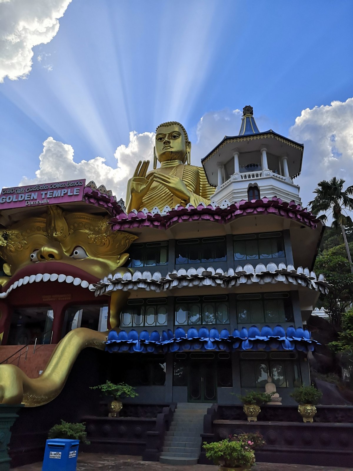 Další dny jsme navštívili Skalní chrám (několik stovek let starý) a Zlatý chrám (z 21. století) v blízkém městě Dambulla. Poslední den jsme strávili prozkoumáváním blízké dvojice skal Pidurangalla (menší, z nich, ze které jsou však úžasné výhledy na tu druhou) a Lví skálu, na jejímž vrcholku se kdysi rozkládala královská civilizace. Zajímavostí je, že zatímco poplatek za vstup pro místní na Lví skálu byl něco kolem 10 Kč, turistům účtují 30 USD (poplatek na menší ze skal byl pak pro turisty v přepočtu asi 50 Kč). Lví skálu jsme navštívili brzo ráno, než se na ní začali řítit davy turistů. Výhledy z vrcholu byly fantastické, pozůstatky staveb taky zajímavé, v rámci vstupu je možné navštívit i muzeum, ale přes to všechno mi cena přišla hodně nadsazená. Na druhou ze skal jsme mířili na západ Slunce, který jsme ovšem málem nestihli kvůli davům a poměrně špatné přístupové cestě, jež byla kvůli špuntu tvořícího rodiny s dětmi na dlouhou dobu zatarasená. Nakonec to dobře dopadlo a Slunce vykouzlilo nad centrálními pláněmi krásnou mozaiku barev.