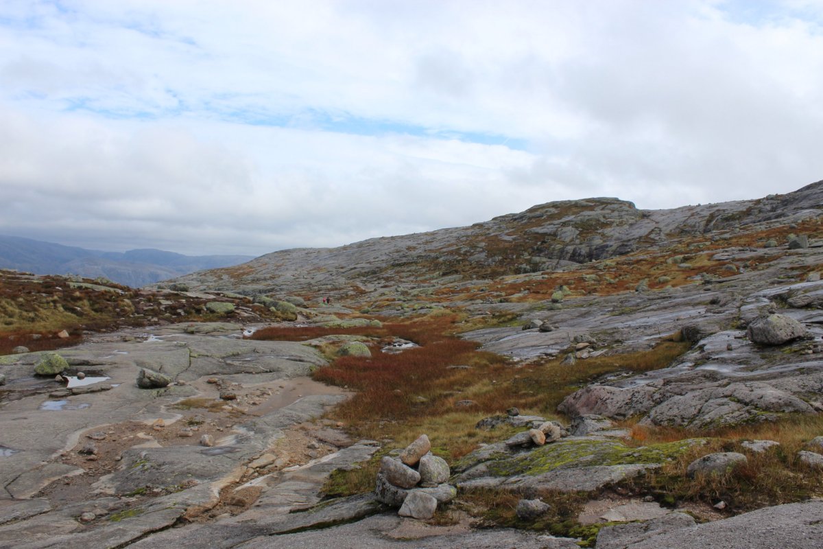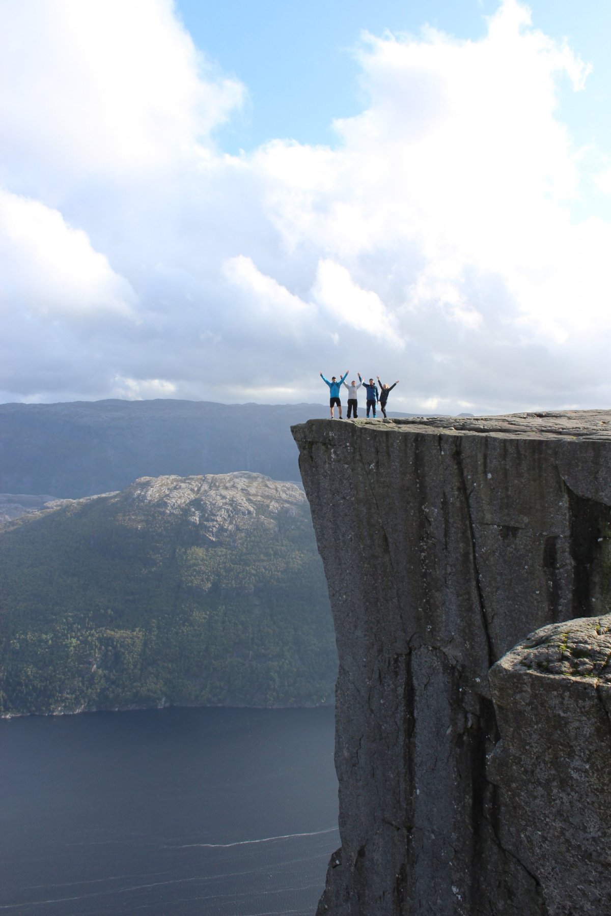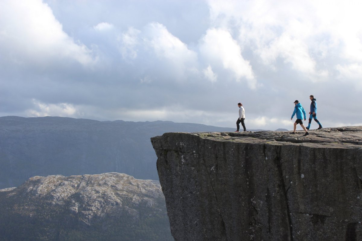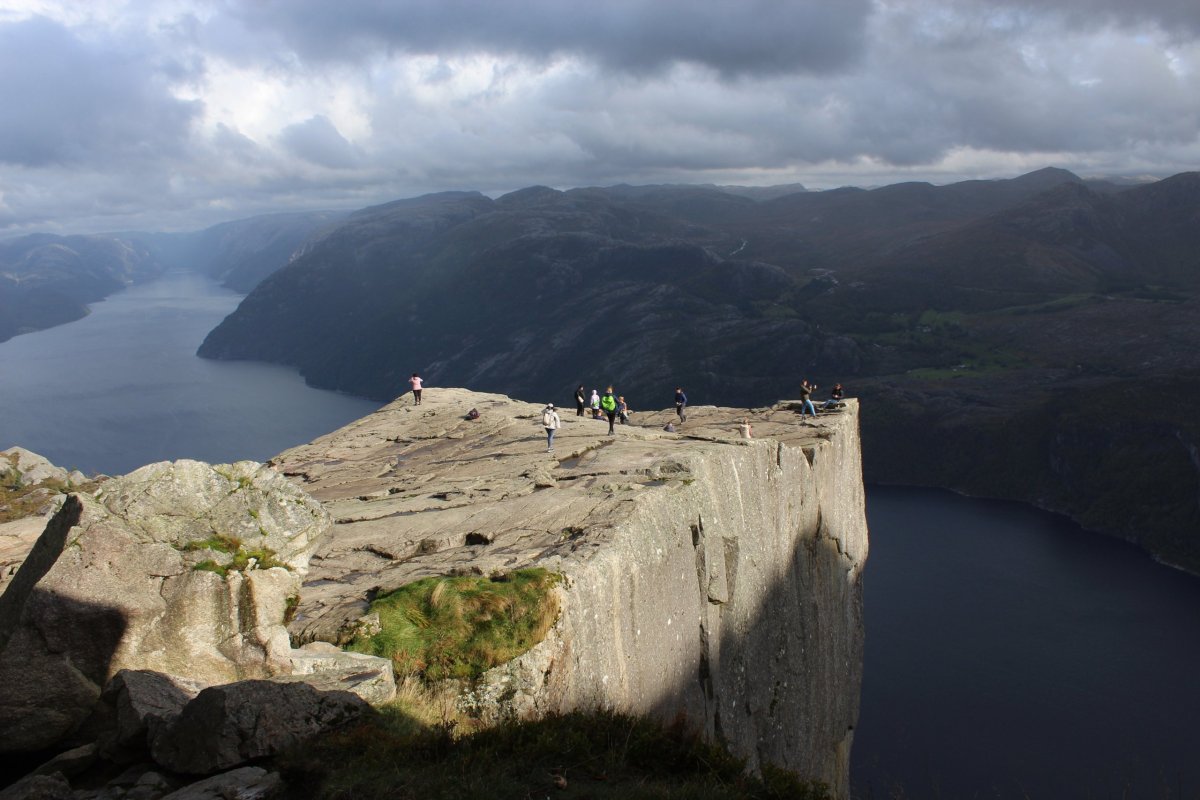 A už razíme za hlavní atrakcí dnešního dne - Preikestolen (v překladu kazatelna) je obrovský kvádrovitý skalní blok vysunutý ze svislé skalní stěny a tyčící se 604 metrů nad modrou hladinou Lysefjordu neboli Pulpit Rock. Čas výstupu na vrchol se pohybuje okolo 2–2,5 hodiny. Trasa není náročná, pouze s několika strmějšími stoupáními.