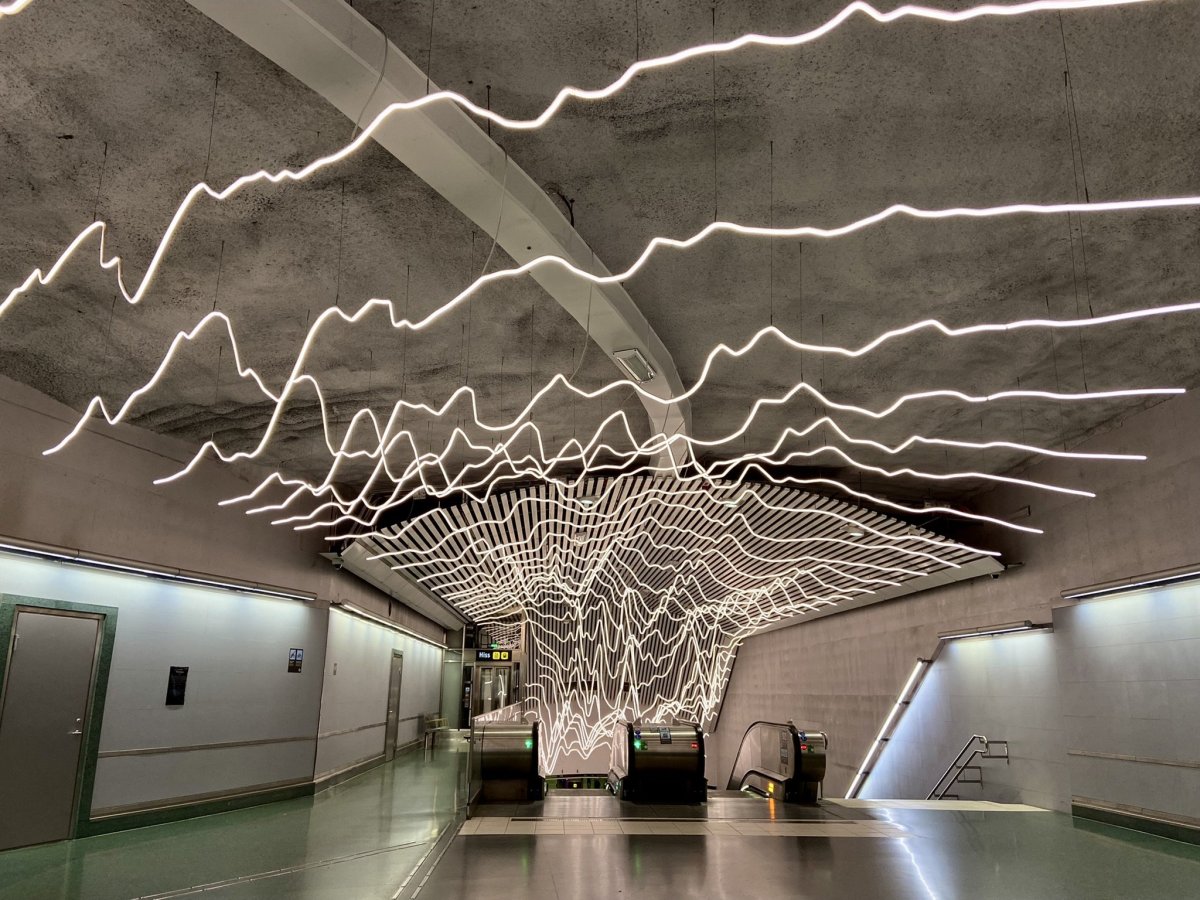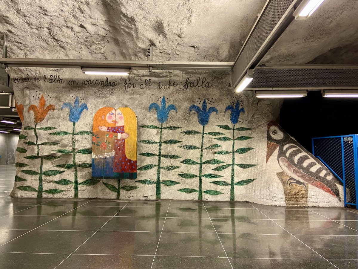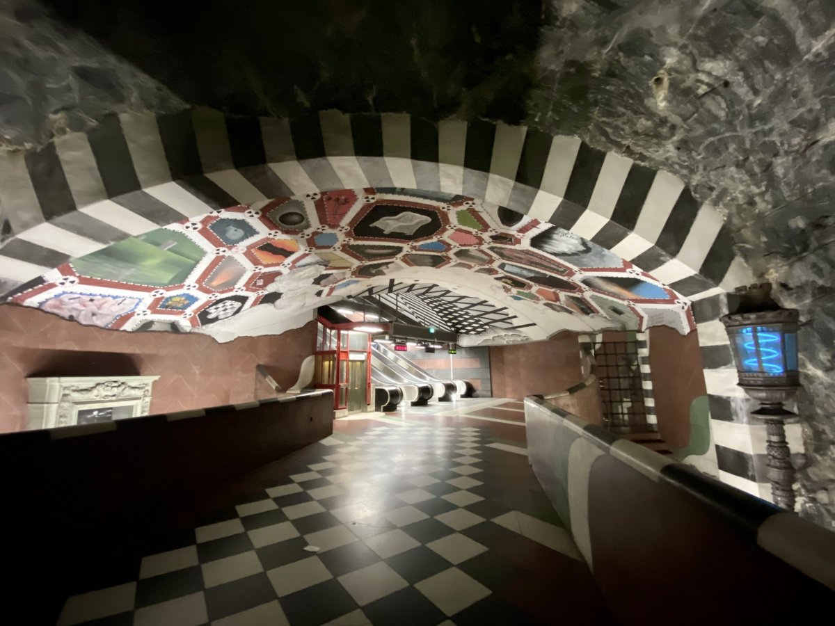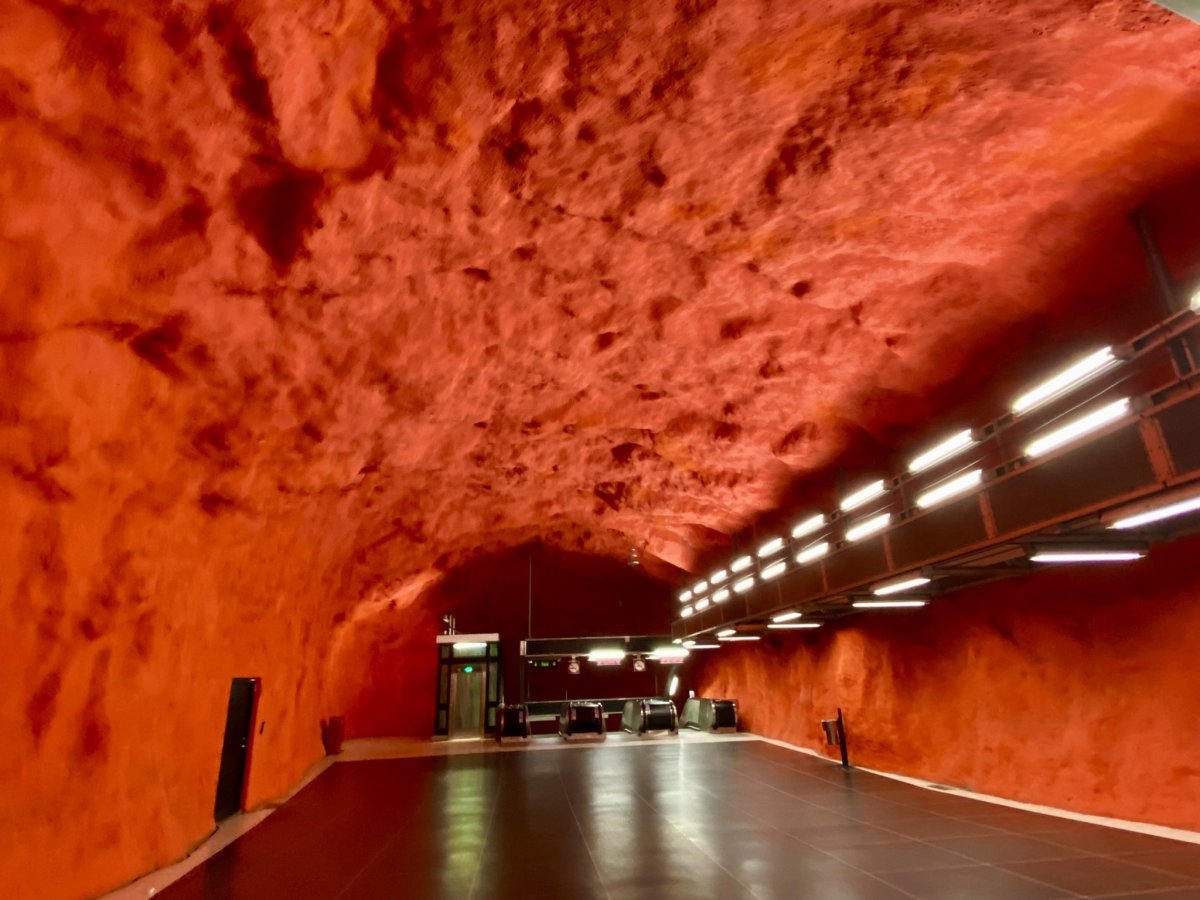 2) Solna centrum – stanice je celá obarvená do červené a vypadá to jak vstup do pekla