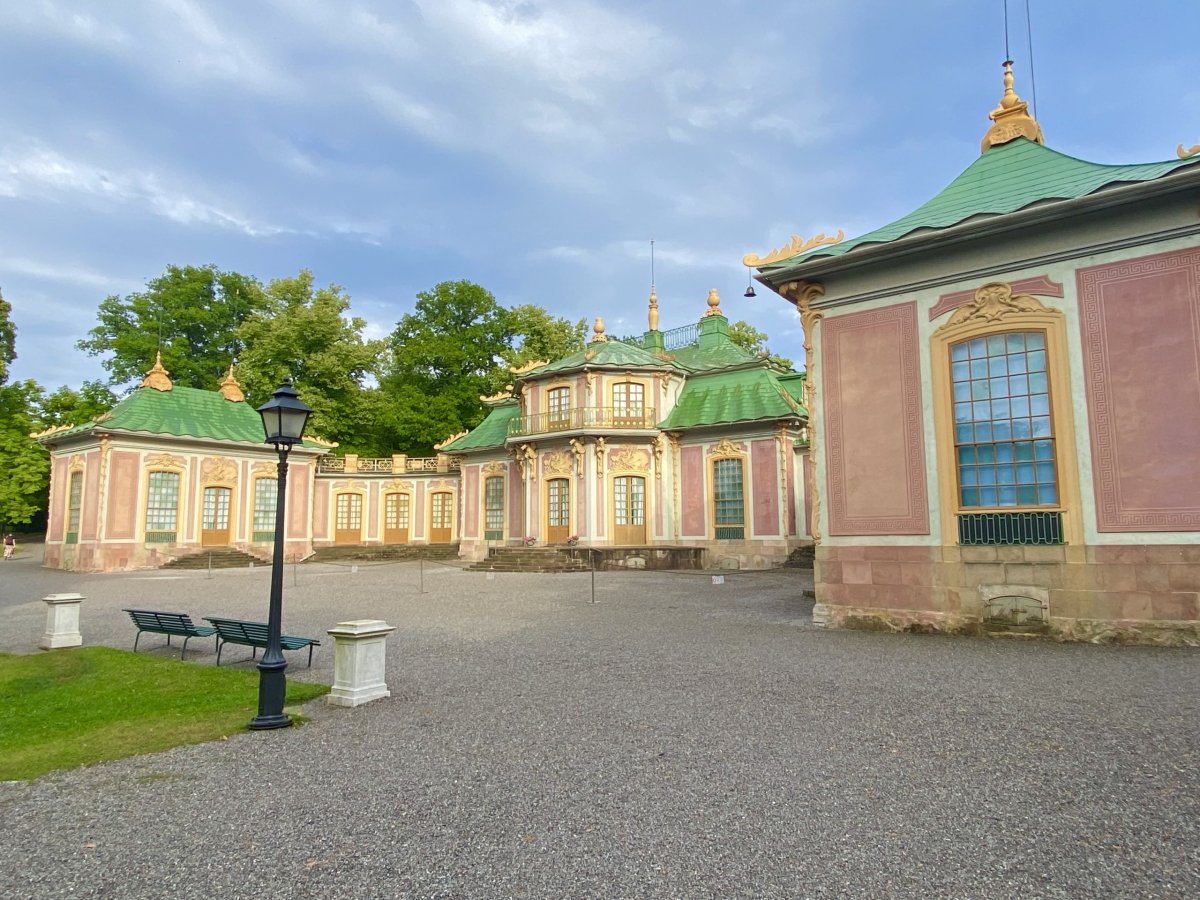 Palác je opravdu krásný i z venku a jeho stavba je inspirovaná francouzským Versailles. V zahradách se nachází bývalý stan pro královskou stráž a čínský pavilon, který stavěli pouze podle své fantazie.