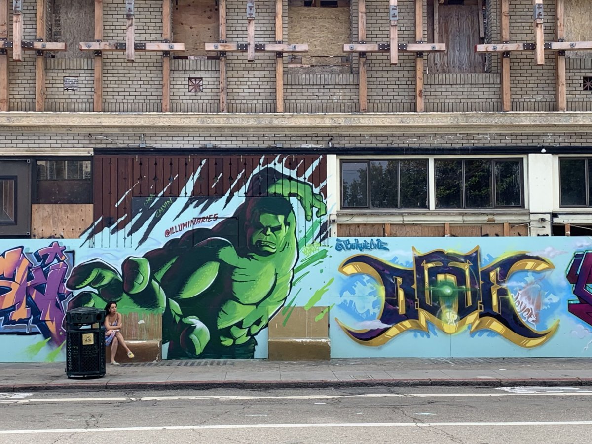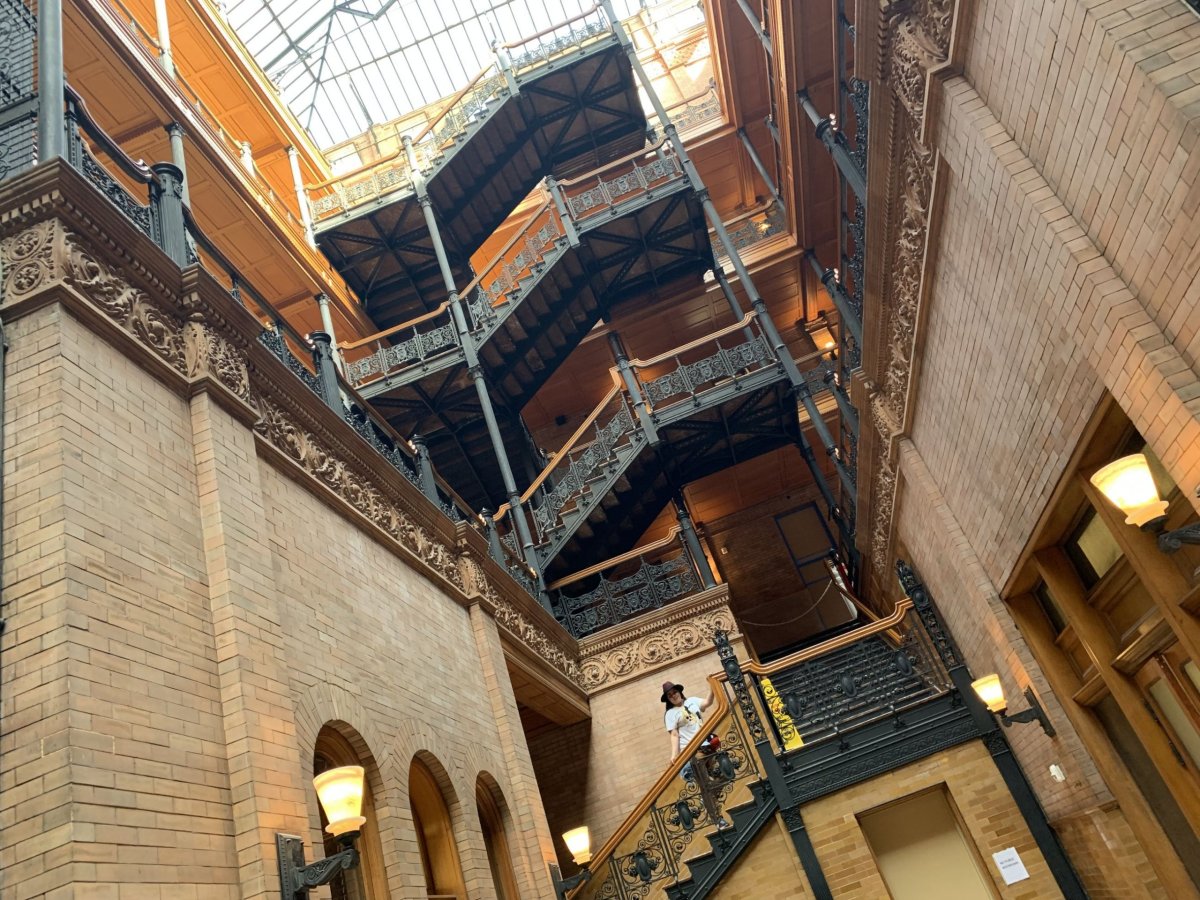 Odpoledne jsme si prošli downtown - flag ship Jordanu, krásný starý knihkupectví (kde se ale nedalo skoro hnout kvůli instagramujícím asiatkám), radnici, starou viktoriánskou Bradbury Building, kde se točil Blade Runner, a Art District. To je bejvalá industriální čtvrť, kde jsou dneska galerie a kavárny ala Berlín. Tam se nám stala poměrně nepříjemná situace, kdy za náma přišel obrovskej černoch, ze má mámu na přístrojích a ze potřebuje na bus, aby za ní jel. Ve mně se hnul altruismus kvůli všem těm zástupům lidí v šíleným stavu, co tu člověk na ulici vidí (jen o kousek dál je čtvrť Skidrow, kde vedle sebe stojí stovky a tisíce stanů, ve kterých přežívají bezdomovci – je to největší homeless place ve Spojených státech). Vyšel jsem s ním teda za roh, že mu ho koupím v automatu, ale když mě začal tahat dál a něco nesrozumitelně a zvýšeným hlasem opakoval, omluvil jsem se, že musím zpátky na tu zastávku, aby mi neujel bus, a že mu ten dolar na jízdenku prostě dám. On na to, ze těch dolarů ale chce 13, ne jeden. V tu chvíli přišel Tomáš, dal mu dva dolary a rovnou i českou stovku, a poslali jsme ho pryč a vrátili se na hlavní, kde byli lidi a sekuriťák před restaurací, a odkud se mě ten týpek snažil zatáhnout co nejdál. V tu chvíli jsem si všiml, že týpek měl v ruce velkou dřevěnou třísku, kterou asi chtěl použít ve chvíli, kdy bysme došli někam dostatečně stranou.