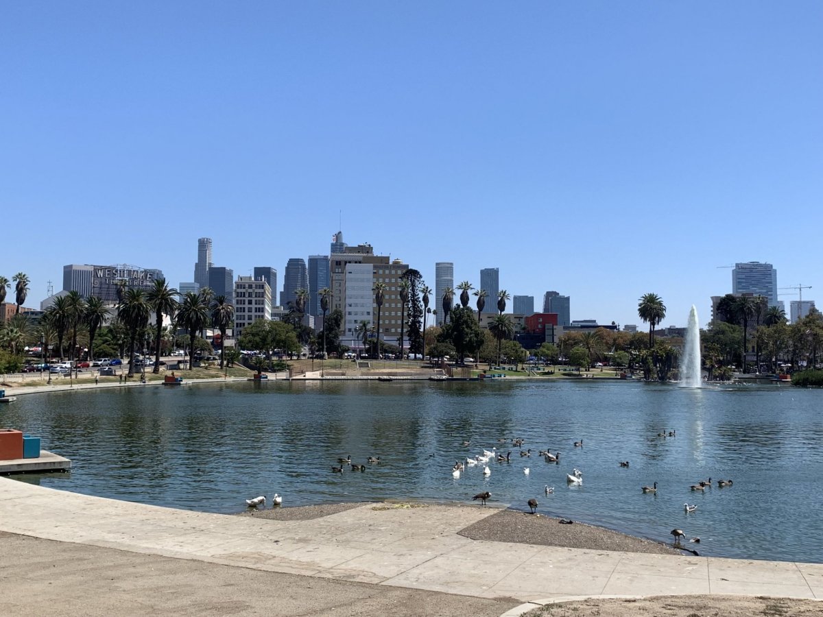 Třetí den v LA už jsme nechali parky parkama a šli si konečně projít město, a zpětně musím říct, že jeden den na to – na rozdíl od takovýho New Yorku - bohatě stačí. Půl odpoledne jsme stejně proseděli v kavárně v Korea Townu, protože jsme potřebovali vyprat v jedný z veřejných prádelen, naplánovat další přejezdy a přelety a Tomáš musel chvíli pracovat. Tak jsem si prošel okolí a hrozně vnímal ty kontrasty – na jedný straně je obrovsky drahej Hollywood a nablejskaný čtvrti v Beverly Hills, na druhý straně je vidět spousta zfetovaných lidí válících se na ulici ve špíně. Můj dojem byl takovej, že když má někdo v Americe prachy, žije si jak bůh, ale jinak na tebe systém totálně sere a umí z tebe udělat pěknou trosku. Hezky to ilustrovalo i jezero, co jsem si po cestě vyfotil - z dálky hezký a modrý, odrážely se v něm mrakodrapy Financial districtu, ale zblízka v něm vidíš v odpadcích hnít mtvý ryby a želvy.