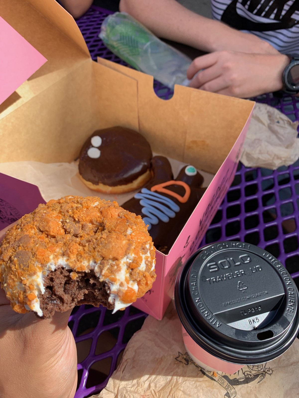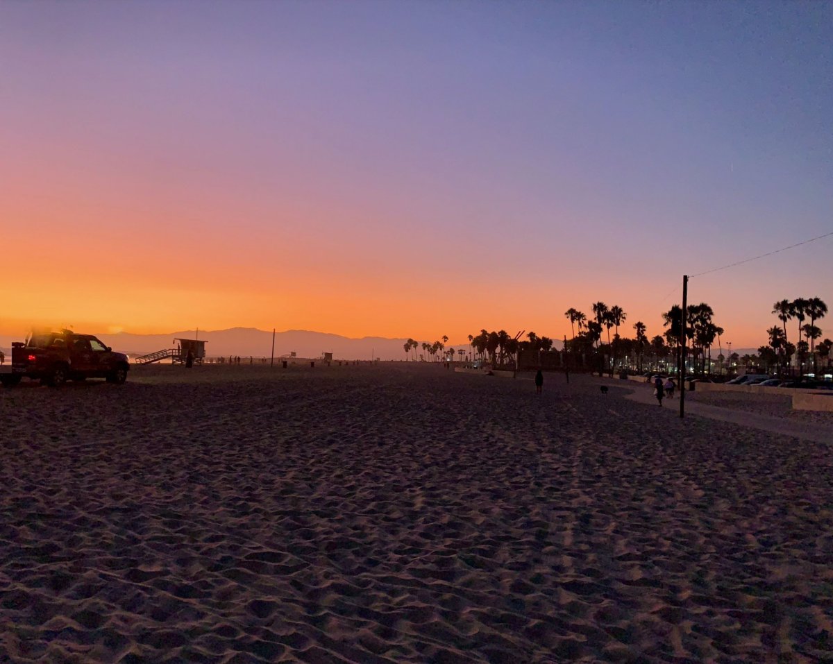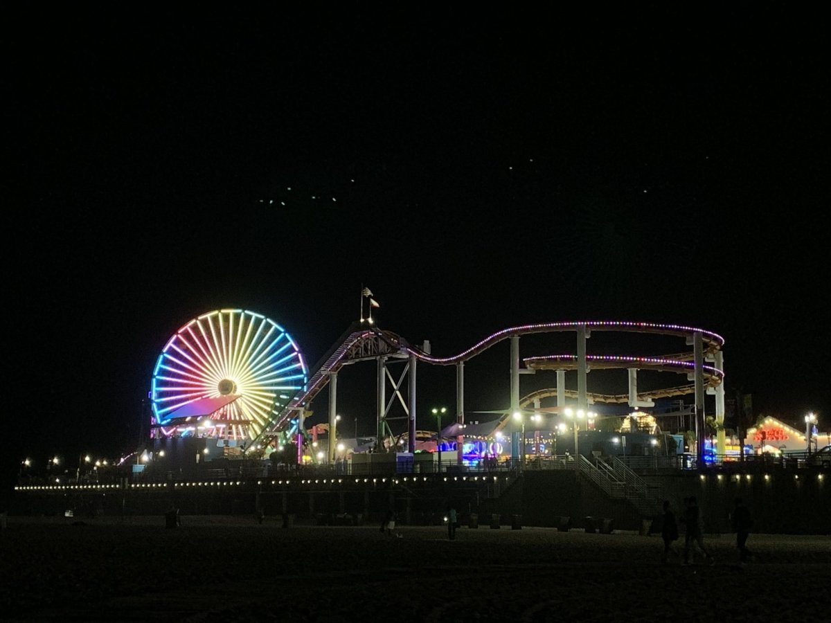 K večeru jsme si vzali Ubera do Venice, což je kopie evropských Benátek, kterou tu před sto lety nechal vybudovat magnát, kterýmu se hrozne líbil originál v Itálii. Ještě před pár lety tu válčily gangy, teď jsou tu nádherný vily s panoramatickýma oknama na Pacifik s kanály, restauracemi a bary. Zase všude smrdí peníze, a zase je o kus dál stanový městečko s bezďákama. Tak jsme se už za tmy prošli po pobřeží k Santa Monica Pier, což je v podstatě velký molo se zábavním parkem, a sedli jsme na dvouhodinový metro domů. Cestou jsme mimochodem potkali obchod s trdelníkem, který stánek samozřejmě inzeroval jako velice tradiční středoveropskou recepturu!