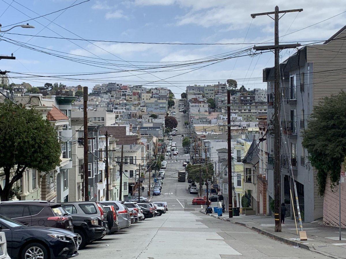 San Francisco jsem si zamiloval podobně jako kdysi New York. Je v něm hrozně příjemný počasí, čisto a to město je krásný a má hrozně zajímavej ráz - ulice jsou tu totiž v podstatě hrozně strmý zvlněný kopce (kde bych ale určitě nechtěl dělat autoškolu). Taky je to hned po New Yorku nejhustěji osídlený město a je tam vůbec nejdražší bydlení v Americe - třípokojovej byt ve starším domku vyjde zhruba na 19 milionů. V maličko levnějších čtvrtích se ale dokonce pořádají demonstrace proti vysázení stromů, protože se místňáci bojí, že by takhle zvelebená ulice přitáhla realitky a ty by je odtamtud vystrnadily. Na rozdíl od pozlacenýho Beverly Hills San Fracisco ale působí strašně příjemně - taky je to hlavni město homosexuálů, hipsterů a dalších alternativních komunit, takže je to tam hrozně liberální a sluníčkový a prostě fajn. I bezdomovců je tu míň, a úplně tu chybí vyloučený lokality. Je tu jediná čtvrť, která se ještě negentrifikovala – Tenderloin, hned u centra, a to kvůli tomu, že jsou v ní maličký byty, ve kterých se nedá prakticky bejt, a zároveň jsou ty domy tak starý, že je památkáři nenechají zbourat a přestavět.