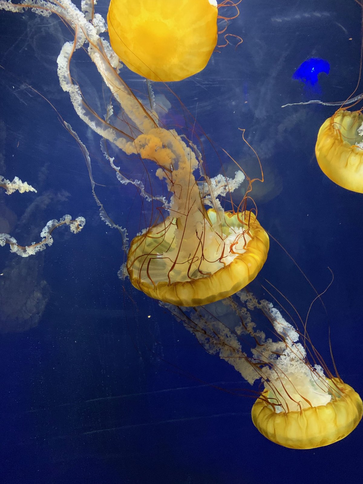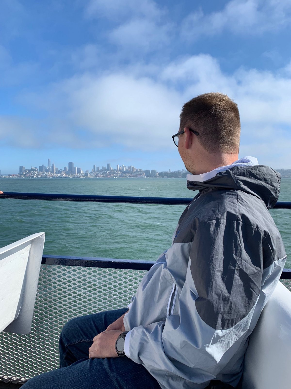 Zábavná je tu i hromadná doprava, jezdí tu busy od Škodovky a tzv. cable cars, což jsou stařičký jednovozový tramvaje, který táhne lano pod zemí, visí se z nich ven do ulice a je z nich spíš turistická atrakce, než reálnej dopravní prostředek (navíc k regulérní permici cesta stojí sedm dolarů a stojí se na ní fronty jak v Disneylandu – Amerika je prostě země front). Byli jsme na vyhlídce Coit Tower, odkud byl v dálce vidět Golden Gate, můj obrovskej cestosen, kterej se ale často schovává v mlze; pak jsme si prošli centrum a přístav Fisherman‘s Wharf, kde jsme vlezli do akvária, kde kolem nás v tunelu plavali žraloci. Vyváleli jsme se na trávě s výhledem na oceán a na molu viděli přerostlý lachtany, kteří tam leželi na sluníčku, štěkali po sobě jak vzteklí, snažili se dělat lachtaňátka, prali se a občas nechtěně upadli do vody. Ještě jsme potkali takový muzeum stařičkých arkádových her a různých automatů a pouťových atrakcí, kde většina stala čtvrťák a měli fakt legendární kousky, jako takový ty dva boxery, který se řežou, dokud jednomu nevyletí hlavička.