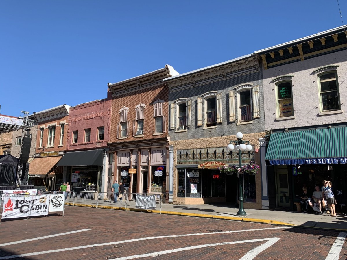 Harold nás pak vzal další ráno na trip po okolí, protože stejně musel vzít pudly k veterináři. a Jižní Dakota ma fakt neskutečnou přírodu. Všude běhaj obří stáda jelenů a jsou tu kopce plný jehličnatých lesů a naprosto čistých řek. Když jsme jeli v autě, Whisky a Brandy byli jak šílený, furt mi oba dělali na klíně blbosti a nemohl jsem se jich zbavit. Přes den nám Harold ukázal Deadwood a večer jsme se šli kouknout na festival, kterej tam zrovna byl. primo na hlavni ulici byla stage, kde hráli kapely (třeba černoši, co hráli úplně parádní funk, to mě hrozně bavilo), lidi na to tancovali jak o život, chlastali, bylo to fajn.