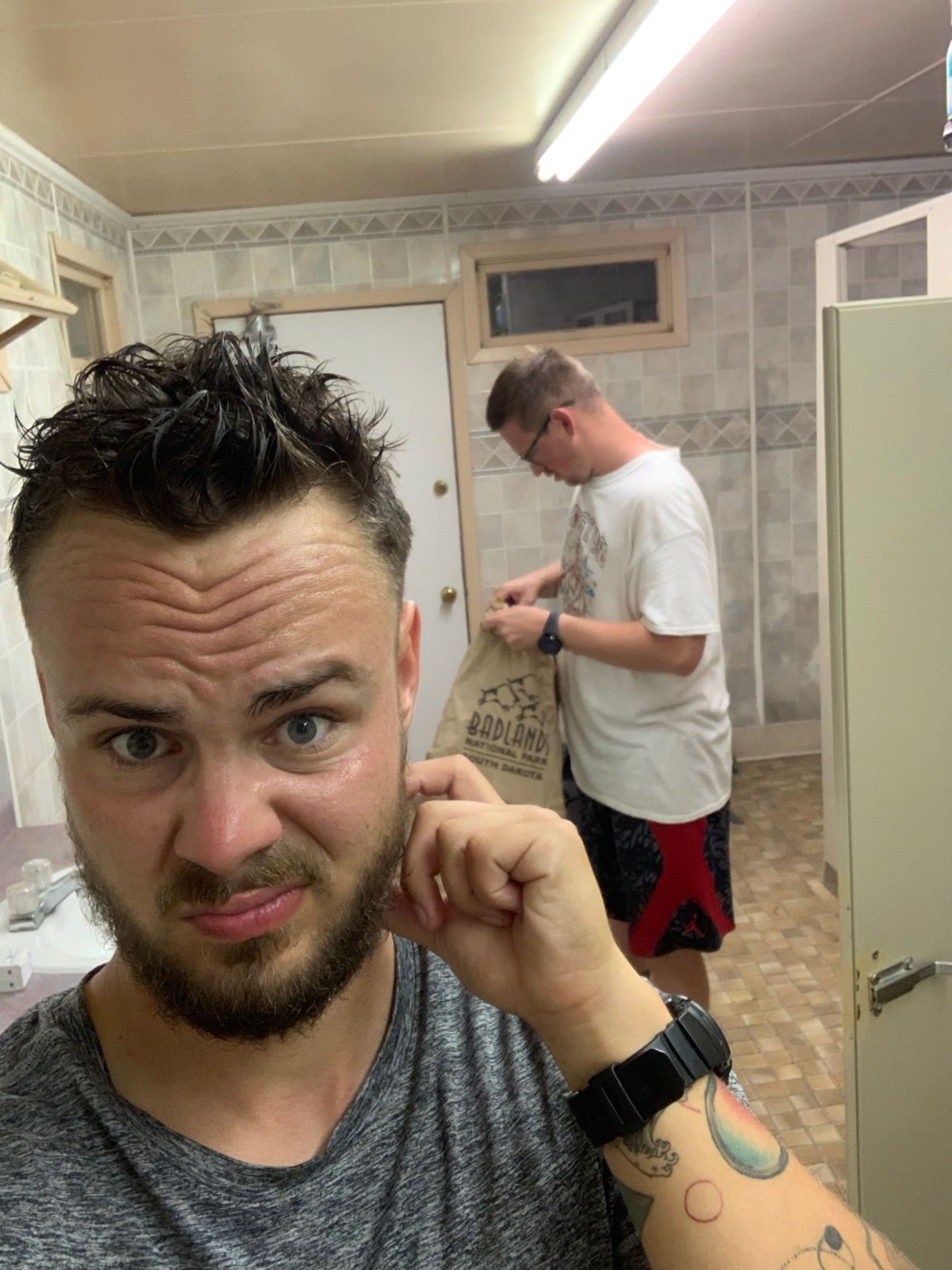 Phaybe nás popovezla asi 30 mil ze Sheridanu, aby se nám jelo dál o něco líp, a cestou nám ukázala krásný westernový městečko Buffalo. Na pumpě, kde nás nechala, jsme sice zase čekali asi dvě hodiny, ale nakonec se zadařilo. Vzal nás obrovskej chlápek, bejvalej šerif a mariňák, mimochodem další jasnej volič Trumpa a úplně zlatej člověk. Za to, že nás vzal, dostal pěkně vynadáno od manželky, ale bylo mu to jedno. Dal nám další zajímavej vhled do toho, jak se Amíci vlastně dívaj na ty svoje bouchačky – podle něj je to prostě pojistka toho, že si vláda nezačne jen tak dělat, co chce.