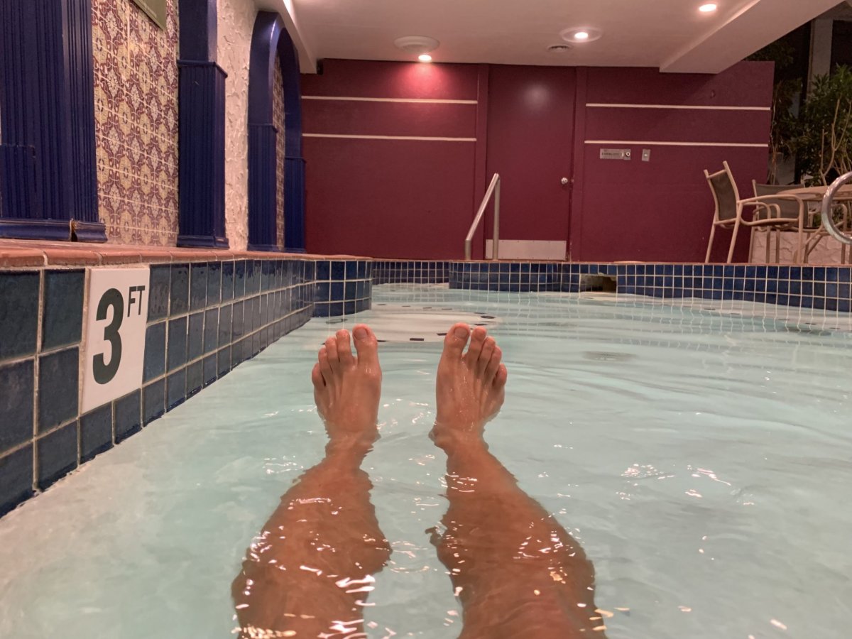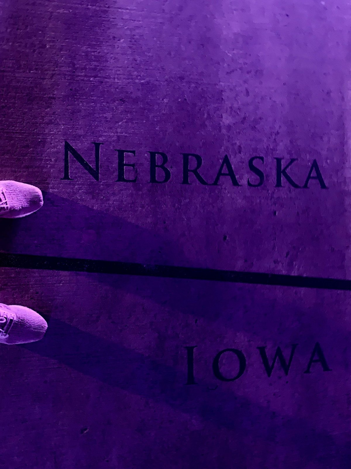Naše stopařka nám dovezla zadky až před hotel, kde jsme měli rezervaci na jednu noc. Prošli jsme si centrum Omahy, most, uprostřed kterýho je nakreslená čára oddělující Iowu od Nebrasky, zaplavali si v bazénu a šli spát, protože ráno v pět jsme vstávali na vlak.