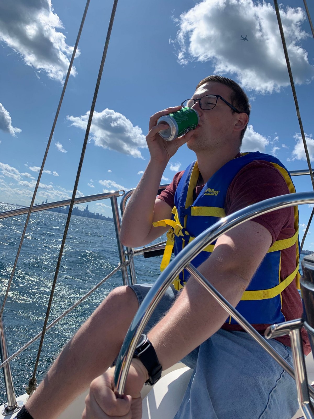 No a poslední den jsme „akorát“ jeli se Stevem na tu jeho plachetničku. Tak nám vysvětlil nějaký základy a asi dvě hodiny jsme jezdili okolo Chicaga. Oba jsme si s Tomášem zkusili kormidlovat, pomáhali jsme i s prací na palubě (různý tahání lan, stahování plachty, zakotvení apod.) byl to obrovskej relax (i když docela fuška) a strašně nás to bavilo, culili jsme se jak debilové ještě několik hodin. A výhledy z toho jezera na město byly samozřejmě boží.
