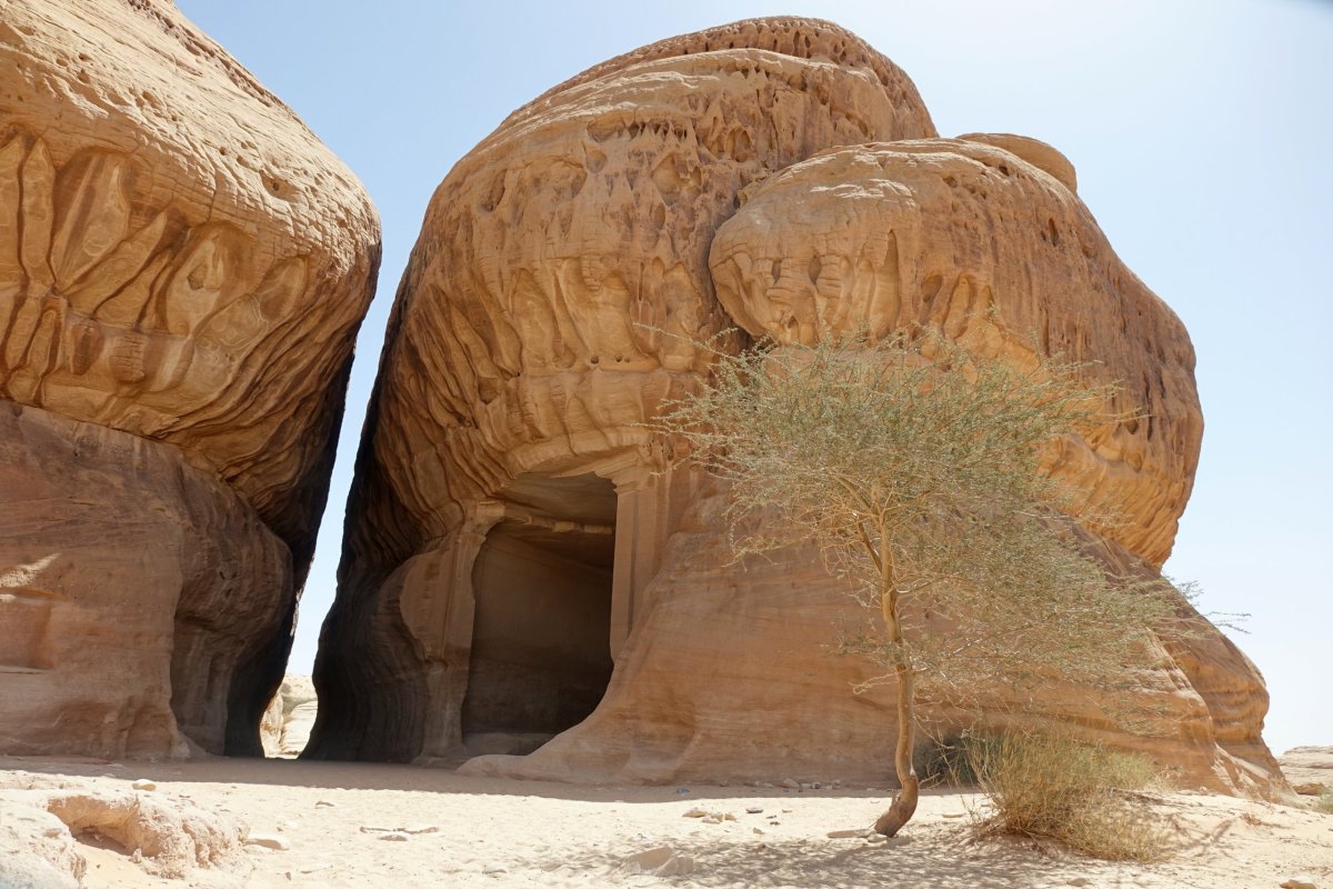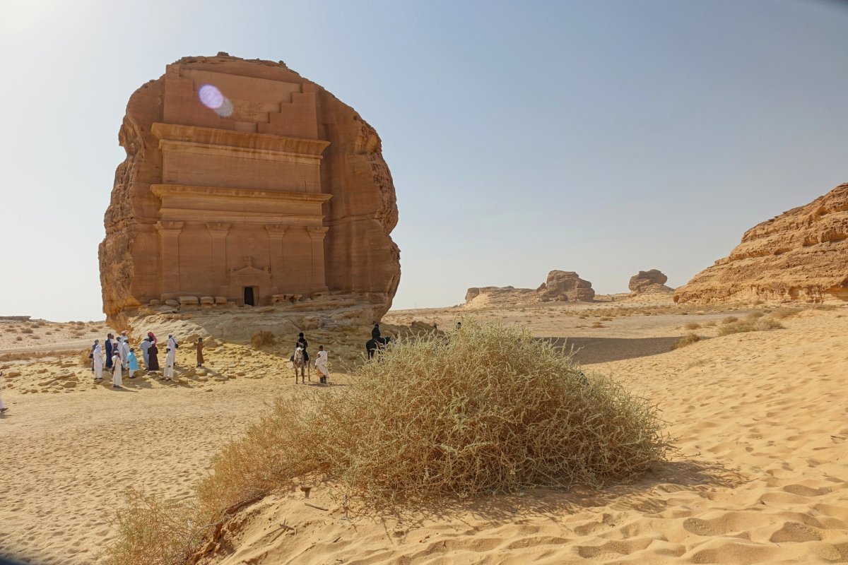 Hegra má ale ještě další, zcela nový rozměr. Je to saúdská snaha o organizaci turistického ruchu. Zpočátku máme dojem rozpačitý. Vstupenky jsou vybookované 2 dny dopředu. Povinný autobus nás veze z vizitorcentra na první určené stanoviště. Hlídači vyměřují naše kroky a obejít kámen ze špatné strany je problém. Proč? Nikdo neví… Nejzajímavější místa jsou od sebe cca 1km daleko a jsou u nich parkoviště. Mezi nimi pendlují busy. Vypadá to, že smíme pouze na pár minut vystoupit a pak se stejným busem přesunout dál. Alespoň tak na nás průvodci jemně tlačí. Postupně ale zjišťujeme, že na každém místě můžeme být, jak dlouho chceme. A také hlídači s jistým překvapením zjišťují, že my rozhodně nelpíme na rychloturistice s první ranní skupinou. Dál už jezdíme prakticky sami. Naším tempem jedou ještě manželé z Texasu, kteří před 20ti lety pracovali v Chomutově. A co dál? Postupně odkrýváme další organizační tajemství. V busech je balená voda pro návštěvníky zdarma. Stejně tak jako datle a hřebíčková káva (skutečně je hřebíčková). Tím to nekončí. Jsou tu elektrokola, která si můžeme půjčit a vše projíždět znovu a znovu. Samozřejmě spořádaně s průvodcem, který se odněkud objevuje v minielektrovozíku. Nevím, jestli to kromě nás dnes ještě někdo zjistil, ale naše hodnocení Hegry strmě stoupá.